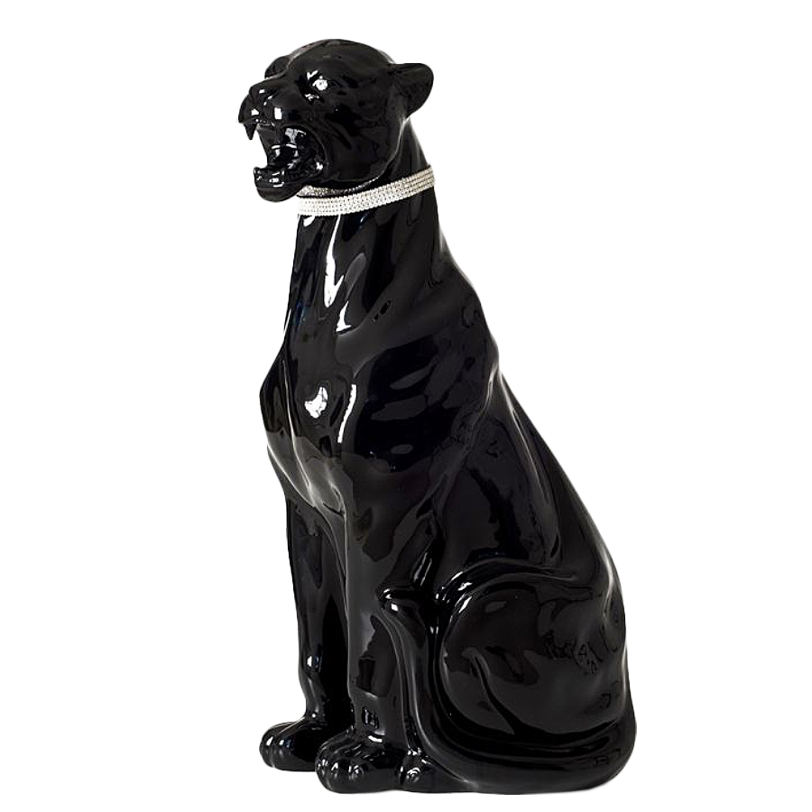 Статуэтка ростовая "Черная Пантера" в ожерелье кристаллами Swarowski (керамика)