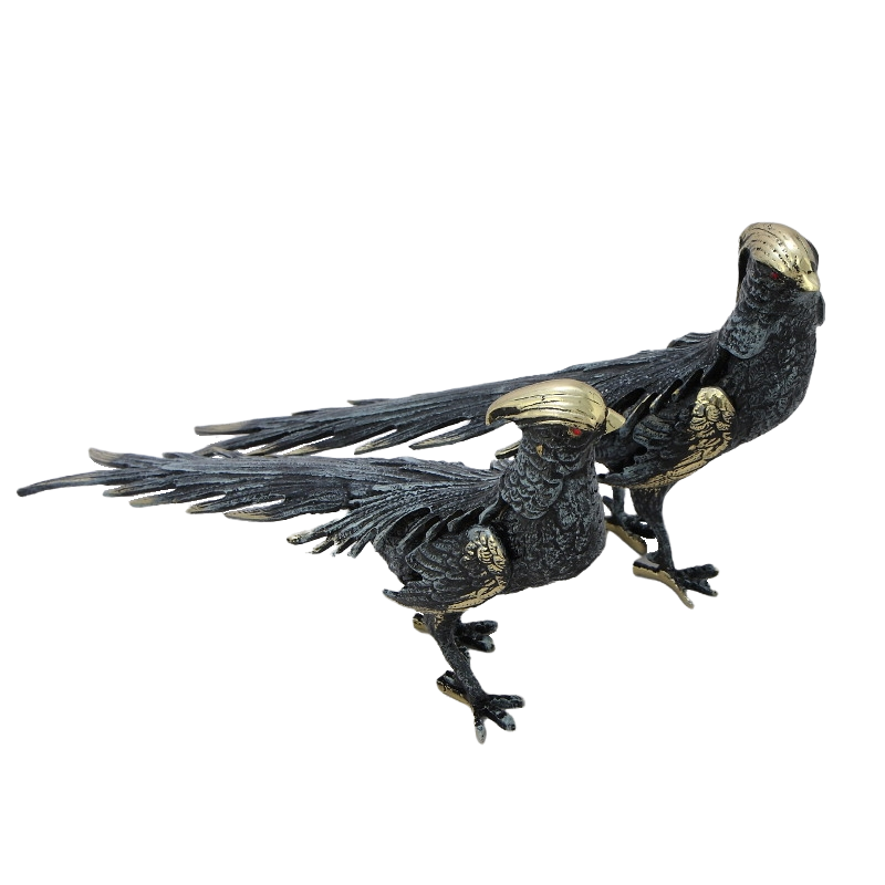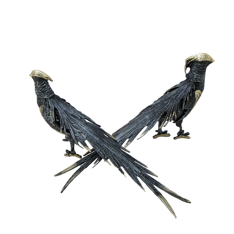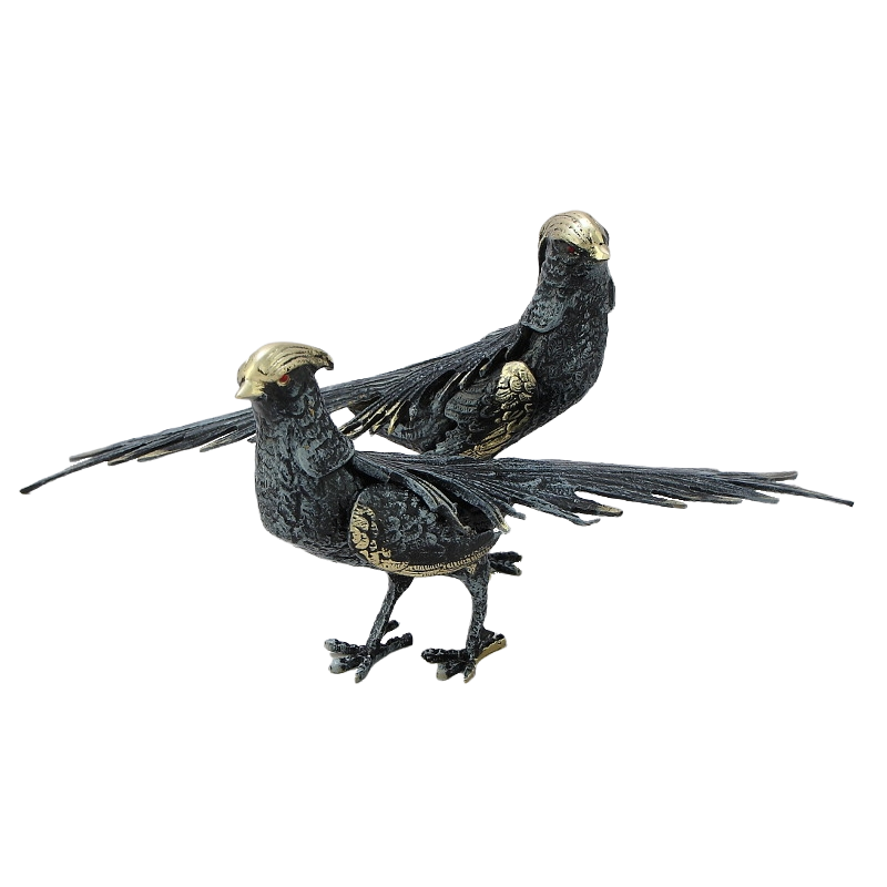 Бронзовые парные статуэтки "Фазаны" с синим отливом