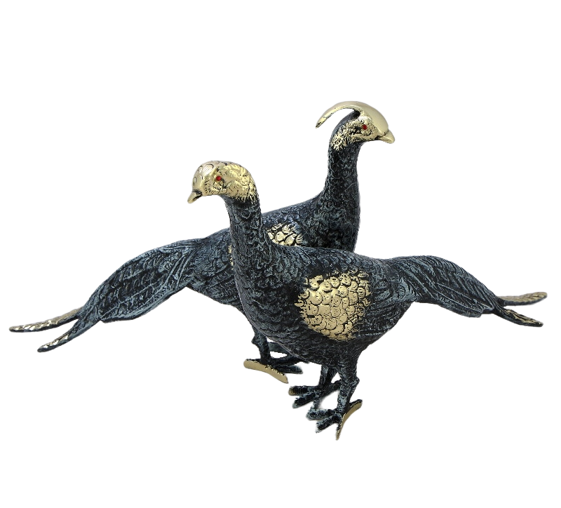 Бронзовые парные статуэтки "Павлины" с синим отливом