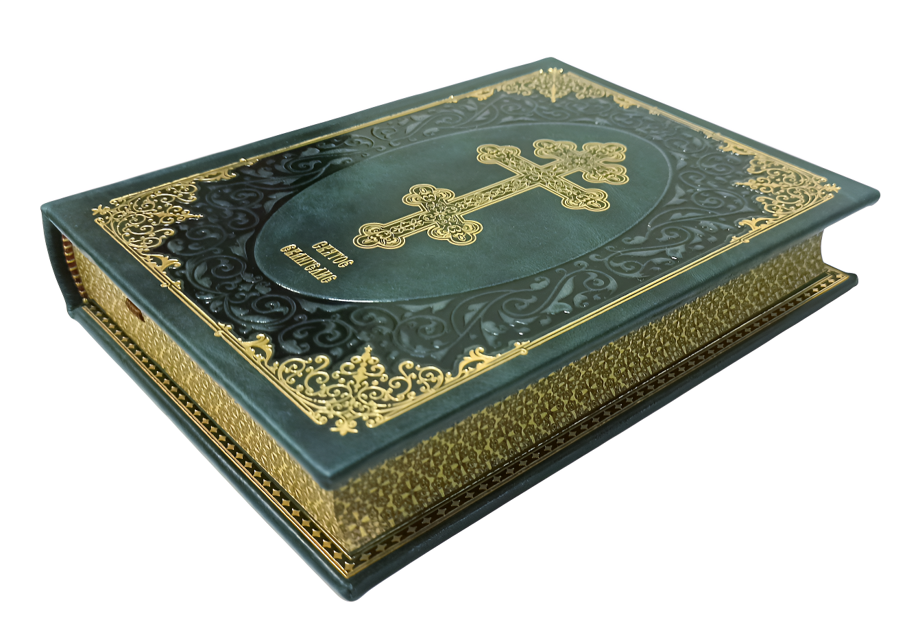 Святое Евангелие крупным шрифтом с выделением слов Спасителя красным цветом, что является удобным решением для восприятия священного текста.