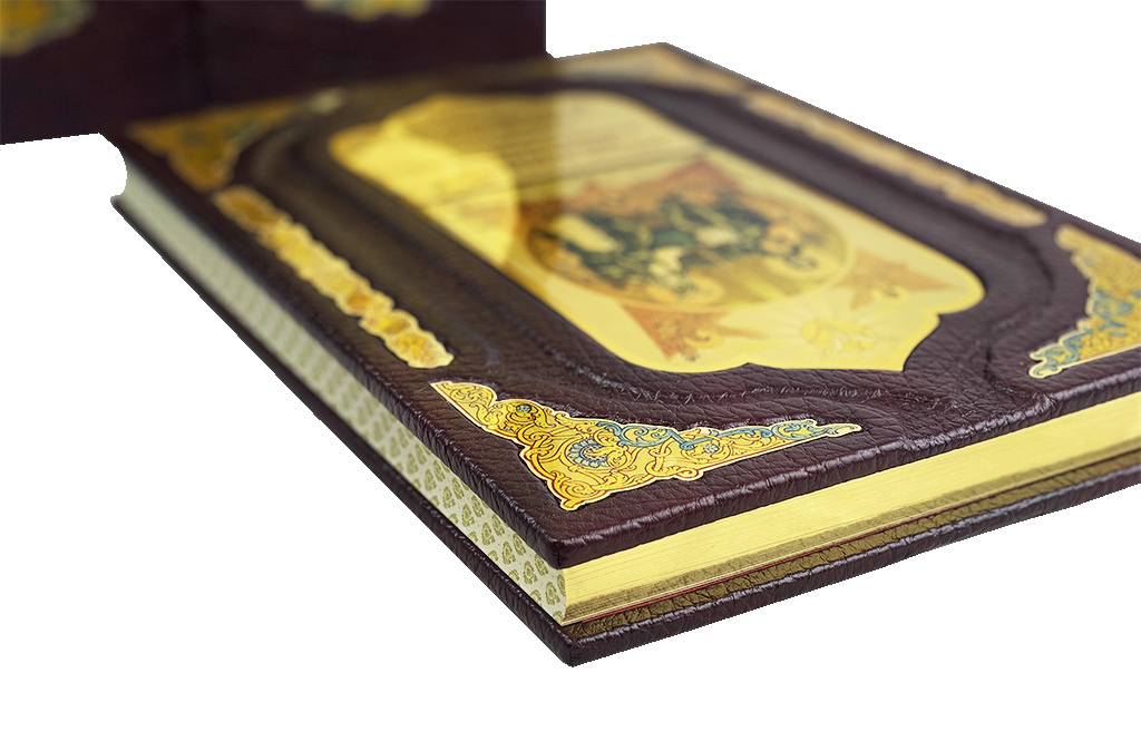 Книга представлена в уникальном подарочном коробе-складне, сделанном из дерева, и обтянутым вручную высококачественной натуральной кожей.