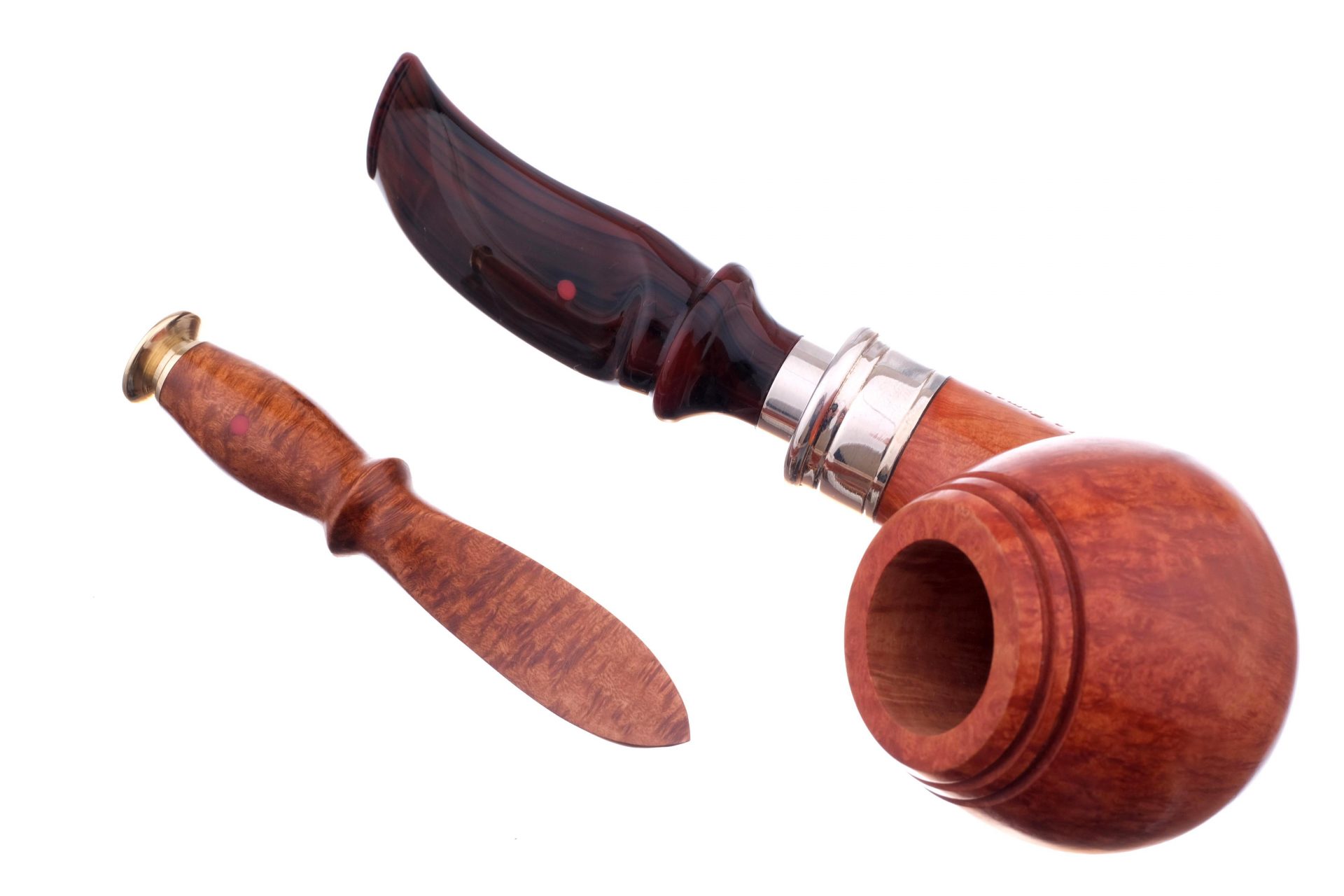 Инструмент для ухода за трубкой в подарочном исполнении из бриара и латуни. Штучная ручная работа итальянских трубочников из мастерской Ser Jacopo (www.serjacopo.it). Модель "Коготь" - тампер для трамбовки и лопатка для чистки или размешивания табака. Поставляется в фирменном кисете.