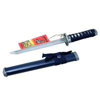 Танто с темно-синими ножнами. На касире изображен воин. Цуба украшена японскими мотивами. Цука оклеена материалом, имитирующим кожу ската и обмотана цука-ито из хлопка. Лезвие изготовлено из нержавеющей стали марки 420С (25 HRC) с высокотехнологичной обработкой (полировкой) и не заточено. Деревянные лакированные ножны (сая) темно-синего цвета и сагео черного цвета. Коигути и кодзири сделаны из металла