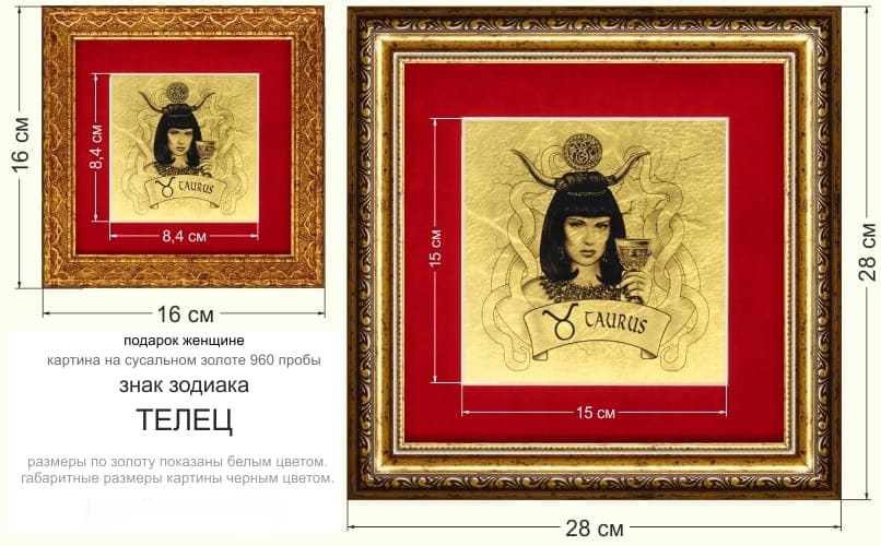 Картина на сусальном золоте «Знак Зодиака Телец»