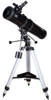 Sky-Watcher BK 1309EQ2 – это качественный и надежный рефлектор Ньютона на жесткой экваториальной монтировке. Данная модель прекрасно подходит для изучения объектов дальнего космоса, например туманностей и галактик. Телескоп ориентирован на начинающих и опытных пользователей. Зеркальный телескоп позволяет получить яркую картинку без хроматических аберраций. Чтобы добиться максимально качественного изображения, лучше вести наблюдения вдали от городской засветки. Эта модель комплектуется двумя окулярами: 25 мм и 10 мм. Экваториальная монтировка EQ2 оснащена механизмами тонких движений, поэтому перемещение оптической трубы происходит плавно и ровно. Алюминиевая тренога обеспечивает устойчивое положение телескопа. Высоту ножек треноги можно регулировать.