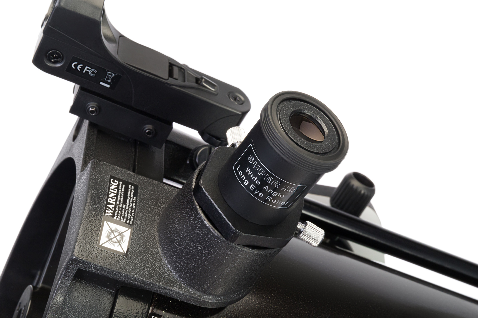 Перед вами Sky-Watcher Dob 150/750 Retractable Virtuoso GTi GOTO – рефлектор Ньютона на настольной монтировке Добсона. Благодаря складной трубе его легко перевозить, поэтому это хороший выбор для загородных наблюдений. К тому же он занимает немного места и в отличие от полноразмерного Добсона спокойно может разместиться на террасе. Монтировка дополнена системой компьютерного автонаведения GOTO, которая самостоятельно выполняет поиск и ведение объектов по небосклону. Дополнительный плюс – наличие базовых аксессуаров в комплекте, что позволяет приступить к наблюдениям незамедлительно.