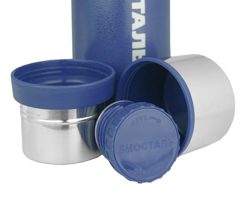 Термос Biostal Охота (0,75 литра), 2 чашки, синий