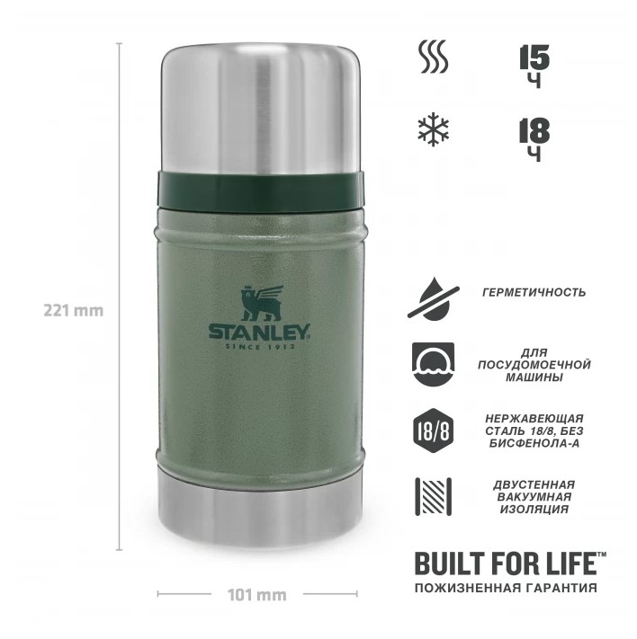 Культовый термос Stanley в новом дизайне имеет меньший размер при том же объеме благодаря уменьшенному расстоянию между стенками. При этом сохраняются те же изоляционные свойства. Крышку термоса можно использовать как чашку.