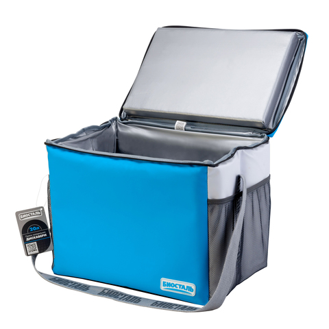 Сумка-холодильник БИОСТАЛЬ ДИСКАВЕРИ в цвете «Морской синий» создана специально для того, чтобы вы могли максимально комфортно хранить продукты и напитки в дороге, на природе и дома. Сумка имеет PEVA внутренний слой, который легко моется и защищает сумку от протекания. Внешнее покрытие сумки – инновационный материал армированный PVC, обладающий влагоотталкивающим свойством и прочностью. Сумка-холодильник БИОСТАЛЬ ДИСКАВЕРИ оснащена замком-молнией с термо, брызго защитой и дополнительными сетчатыми карманами снаружи сумки. Кроме того, мы позаботились о том, чтобы сумку-холодильник БИОСТАЛЬ ДИСКАВЕРИ было удобно носить: мягкие, но прочные ремни на сумке такой длины, чтобы вы могли носить её не только в руках, но и на плече. Все ручки дополнительно прошиты до самого основания сумки, чтобы исключить любую возможность разрыва. Благодаря продуманной конструкции, сумка легко складывается для хранения. В разложенном виде, даже пустая сумка превосходно держит форму. Внутренний объем сумки – 30 литров. Слой изоляции составляет 40 мм. Время сохранения холода - 132 часа.*
