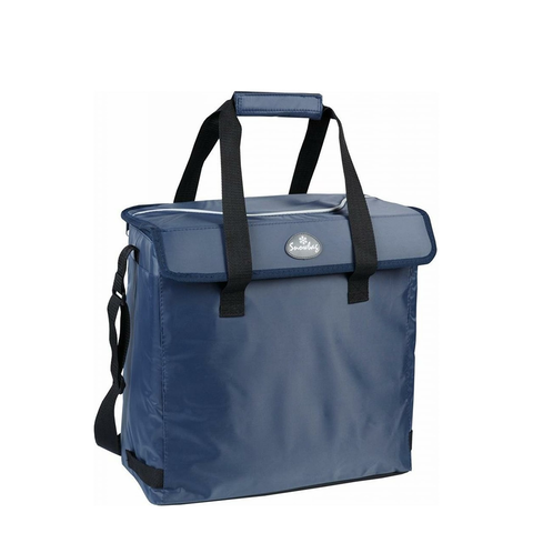 Очень большая сумка-холодильник с длинным ремнем на плечо и парой коротких ручек с фиксатором для комфортной переноски. Вмещает 30 литров продуктов и напитков – этот объем сравним с объемом среднего холодильника. Сумка снабжена мягкой термоизоляцией и откидной крышкой. С аккумуляторами холода сохраняет низкую температуру в течение 14 часов.