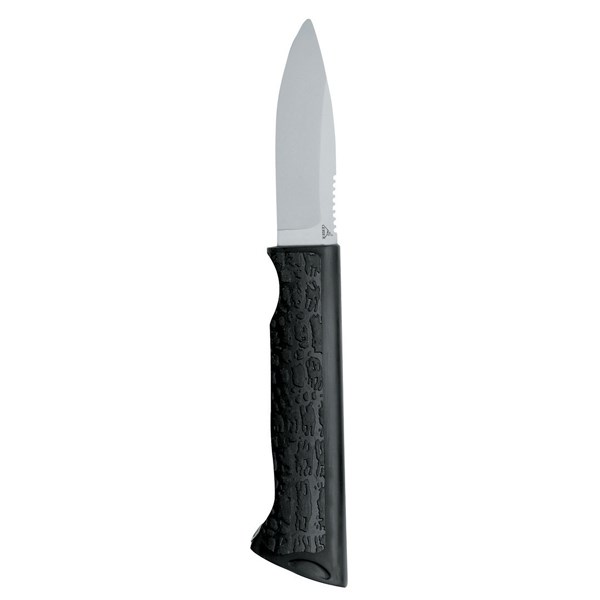 Заточка ножа полностью гладкая, что позволяет использовать его для работы с большинством материалов, в том числе, приготовления пищи. Ножнами для ножа служит рукоятка топора, ну а топорище защищено нейлоновымчехлом.