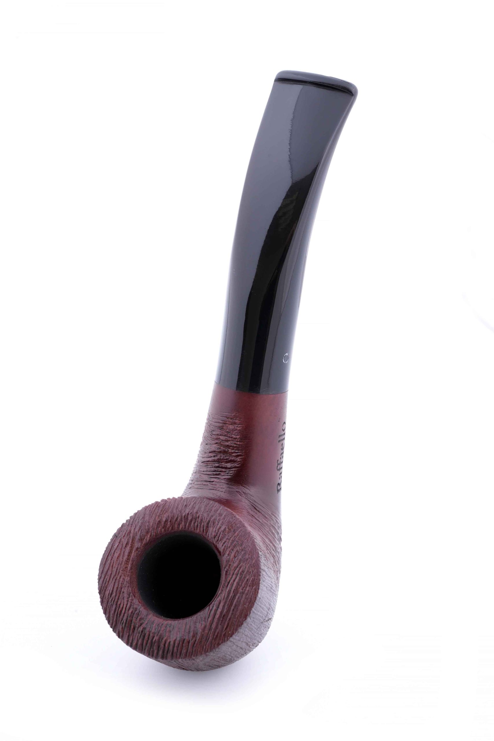 Трубка серии Raffaello из тосканской мастерской Чезаре Баронтини, Ливорно, Италия. Внешняя отделка Pettinata ("расческа", ит.) - особая техника мелкого рустирования, придающая поверхности шелковистый вид "причесанного" меха. Трубка приятно держится в руке, а увеличенная за счет рустирования площадь поверхности способствует лучшему охлаждению трубки при курении.