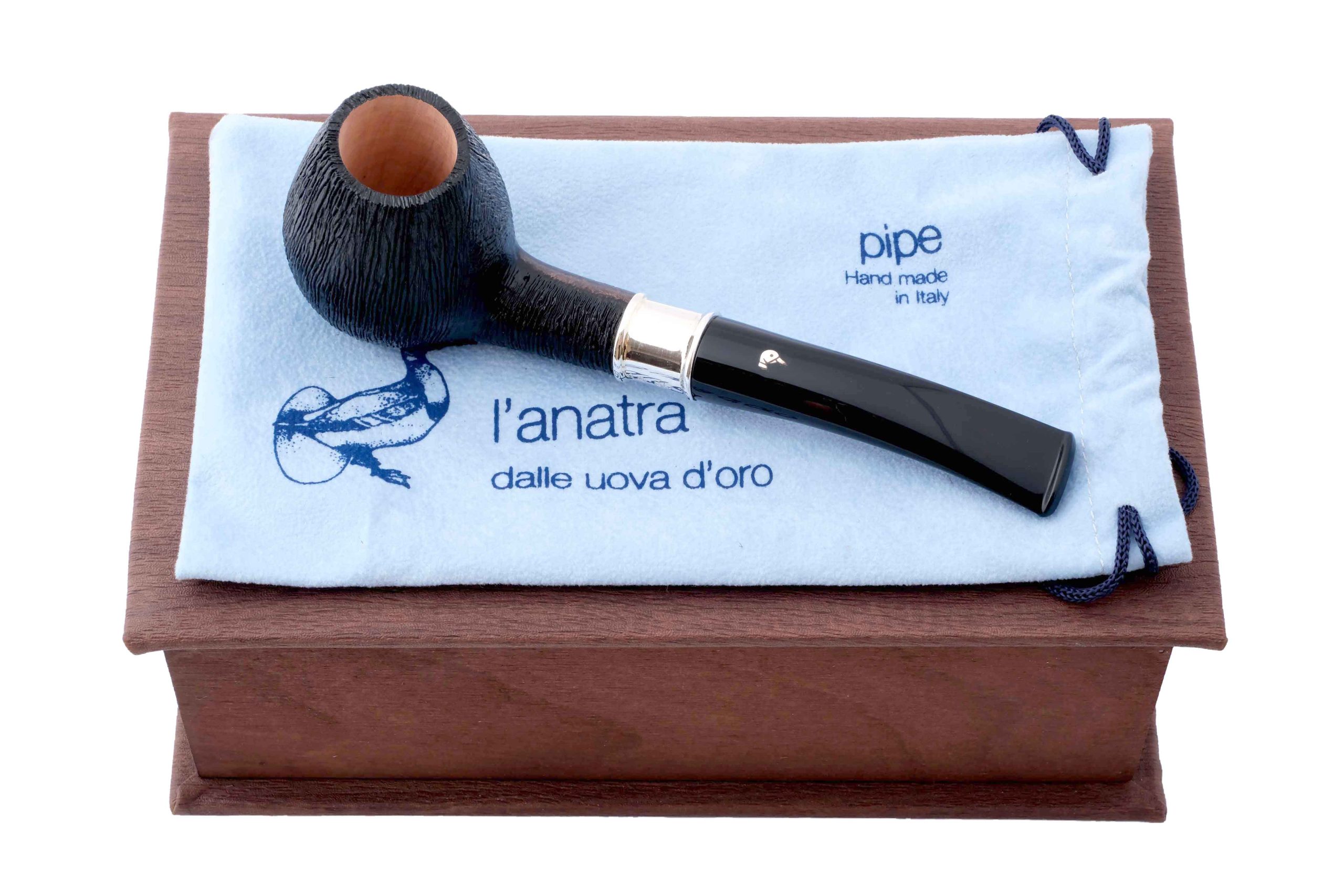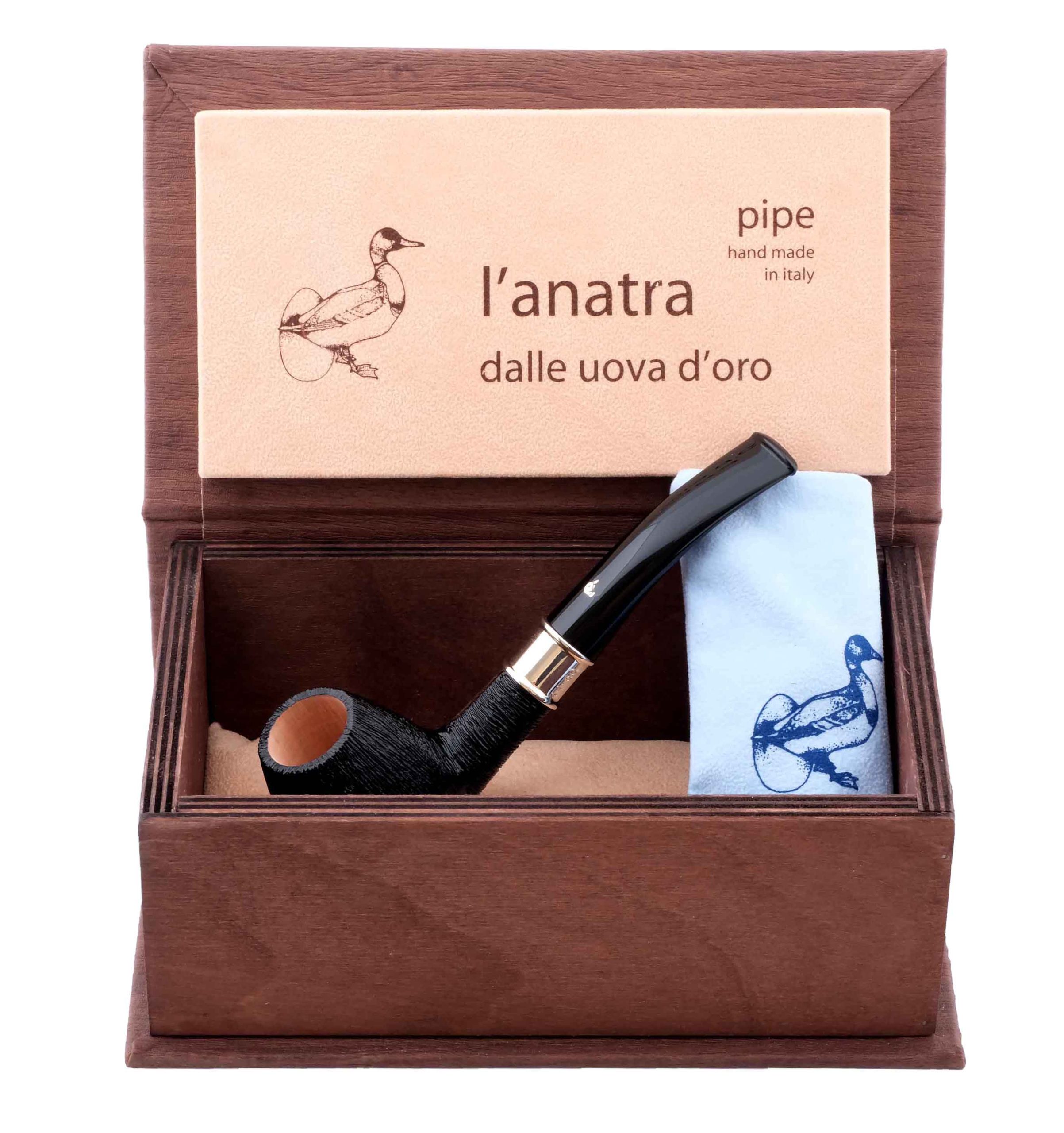 На мундштуке нанесен символ компании — серебряная голова утки и на чубуке выбит девиз L’Anatra dalle uova d’oro — «Утка несущая золотые яйца» и Hand made in Italy.