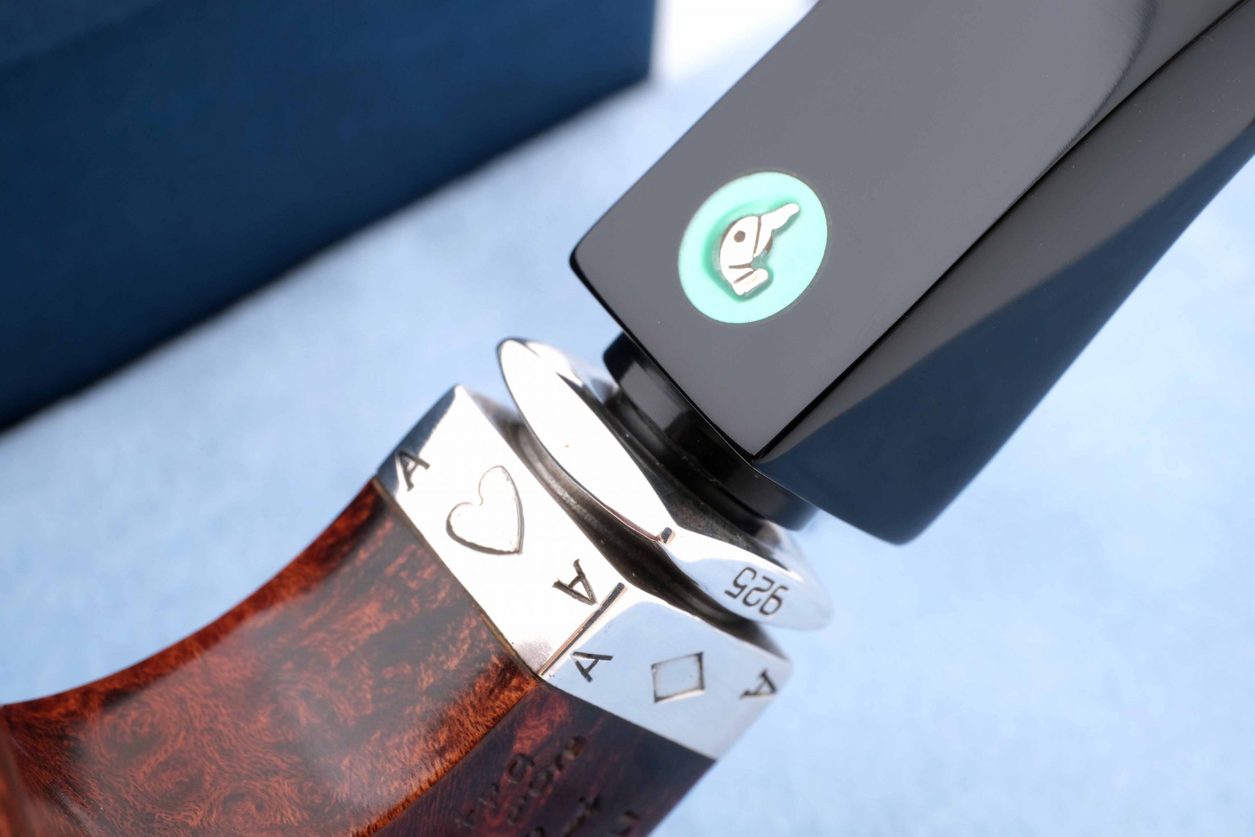Трубка L’Anatra Poker с изображением карточных мастей на массивном кольце из серебра.
