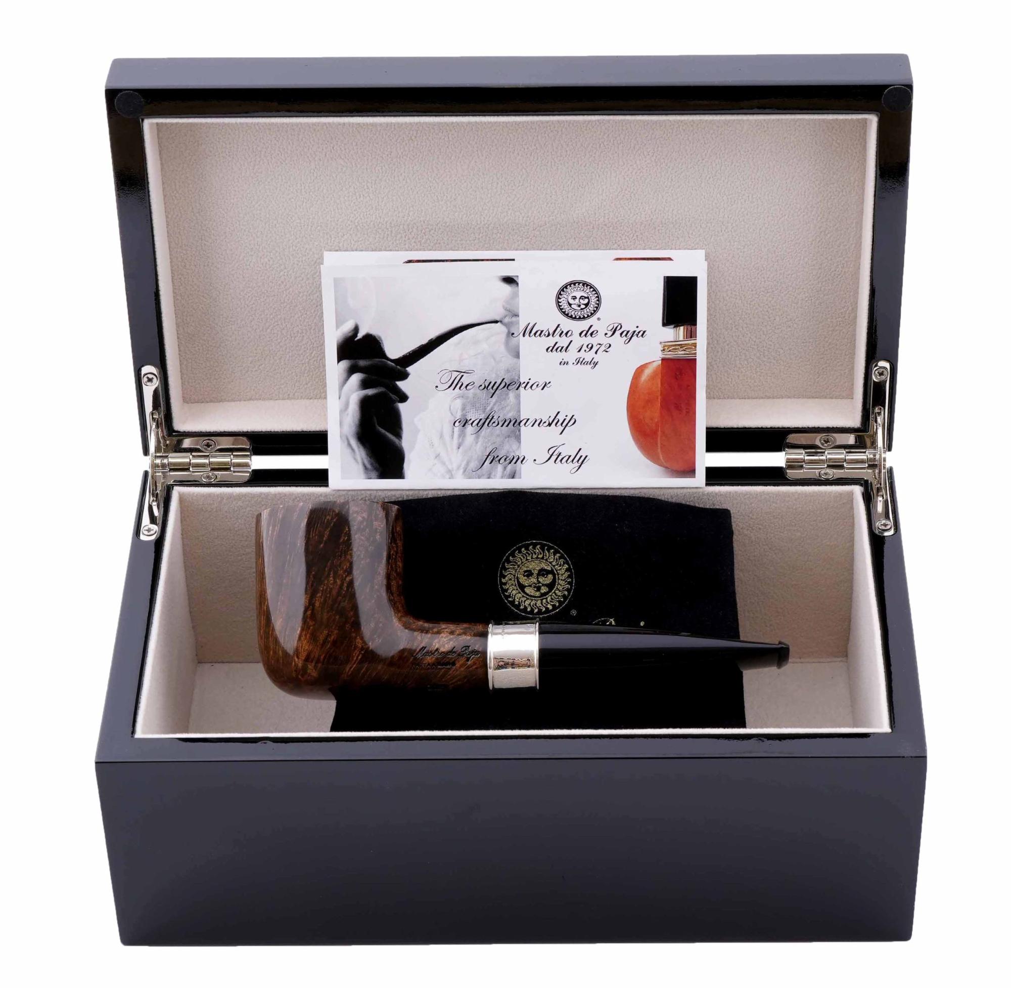 В комплекте подарочная шкатулка, фирменный кисет и буклет компании Mastro de Paja. Ручная работа.