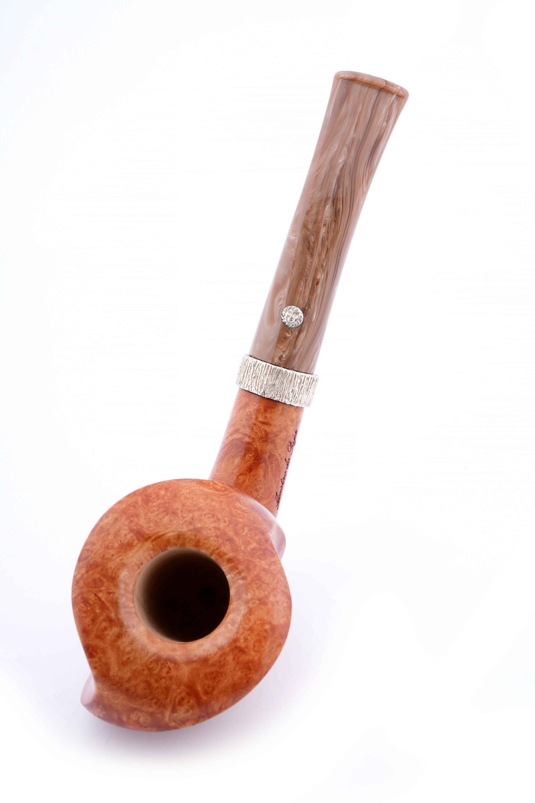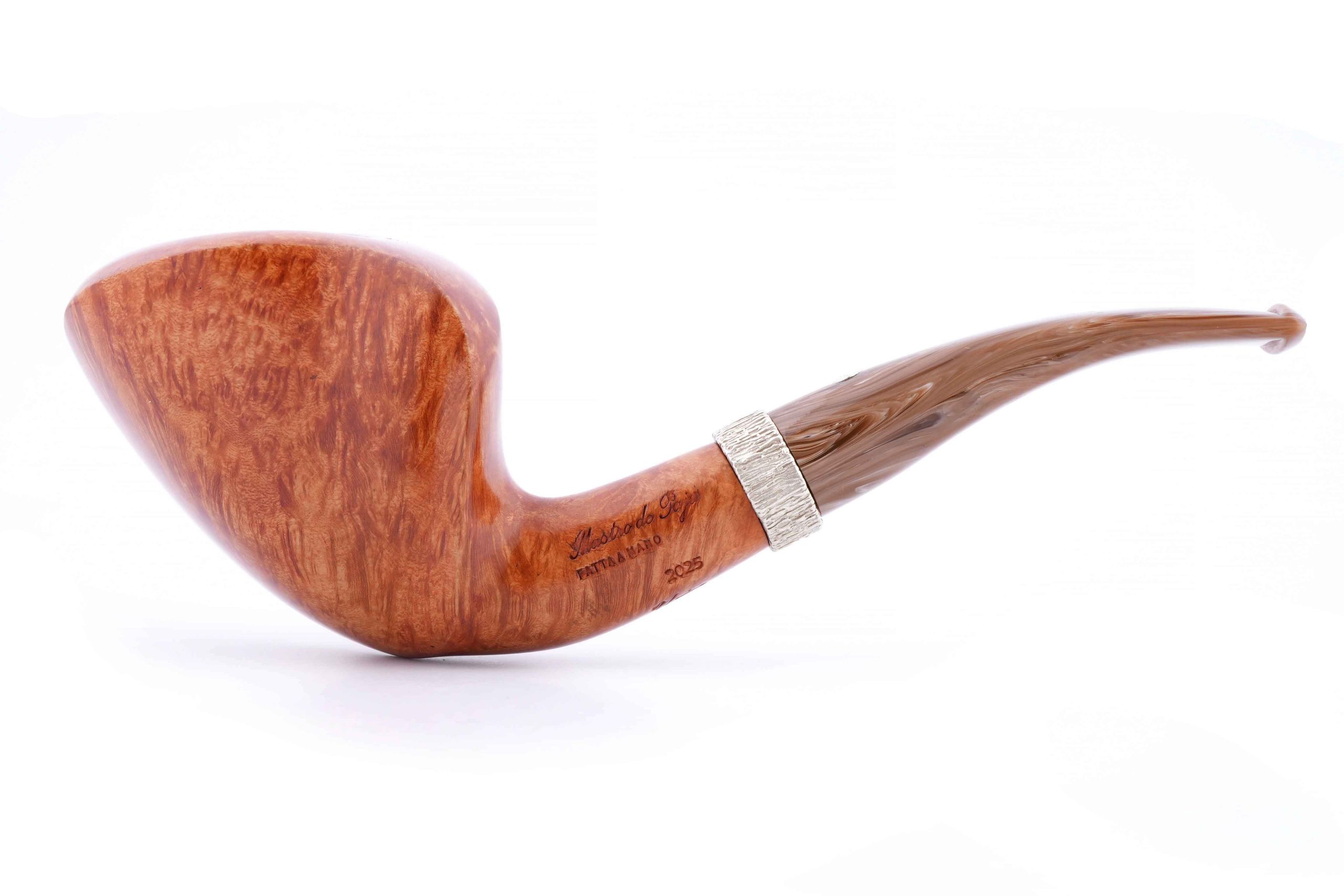 Трубка высшего грэйда из мастерской Мастро де Пайа. Принадлежит к лимитированной серии Elite, где каждый экземпляр неповторим, имея свой индивидуальный дизайн. Светлая трубка имеет натуральный цвет бриара, покрытого только натуральным карнаубским воском.
