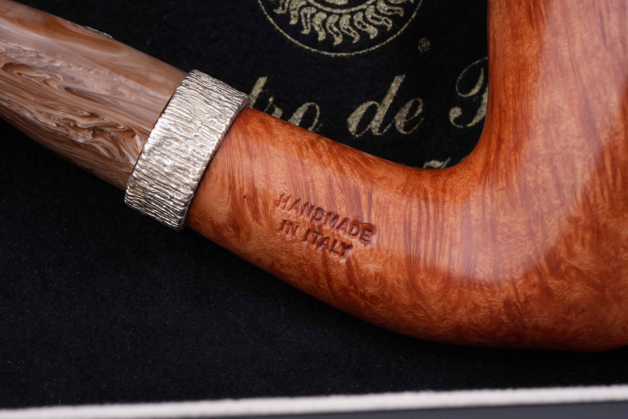 В комплекте подарочная шкатулка, фирменный кисет и буклет компании Mastro de Paja. Ручная работа, единственный экземпляр.