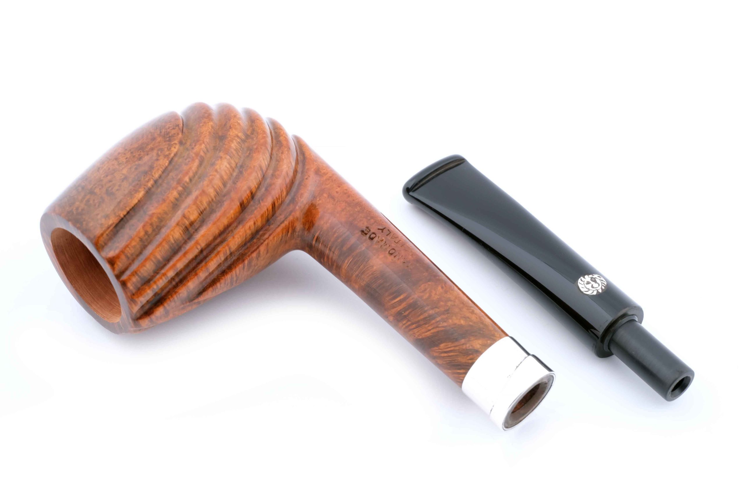 Суперлегкая и изящная трубка из мастерской Мастро де Пайа. Принадлежит к лимитированной серии Unica, где каждый экземпляр неповторим, имея свой индивидуальный дизайн. Кольцо на чубуке - серебро 925 пробы.