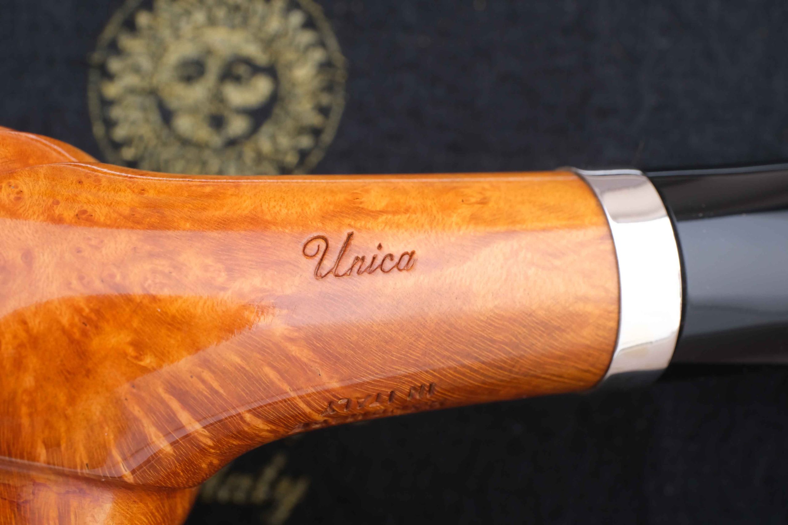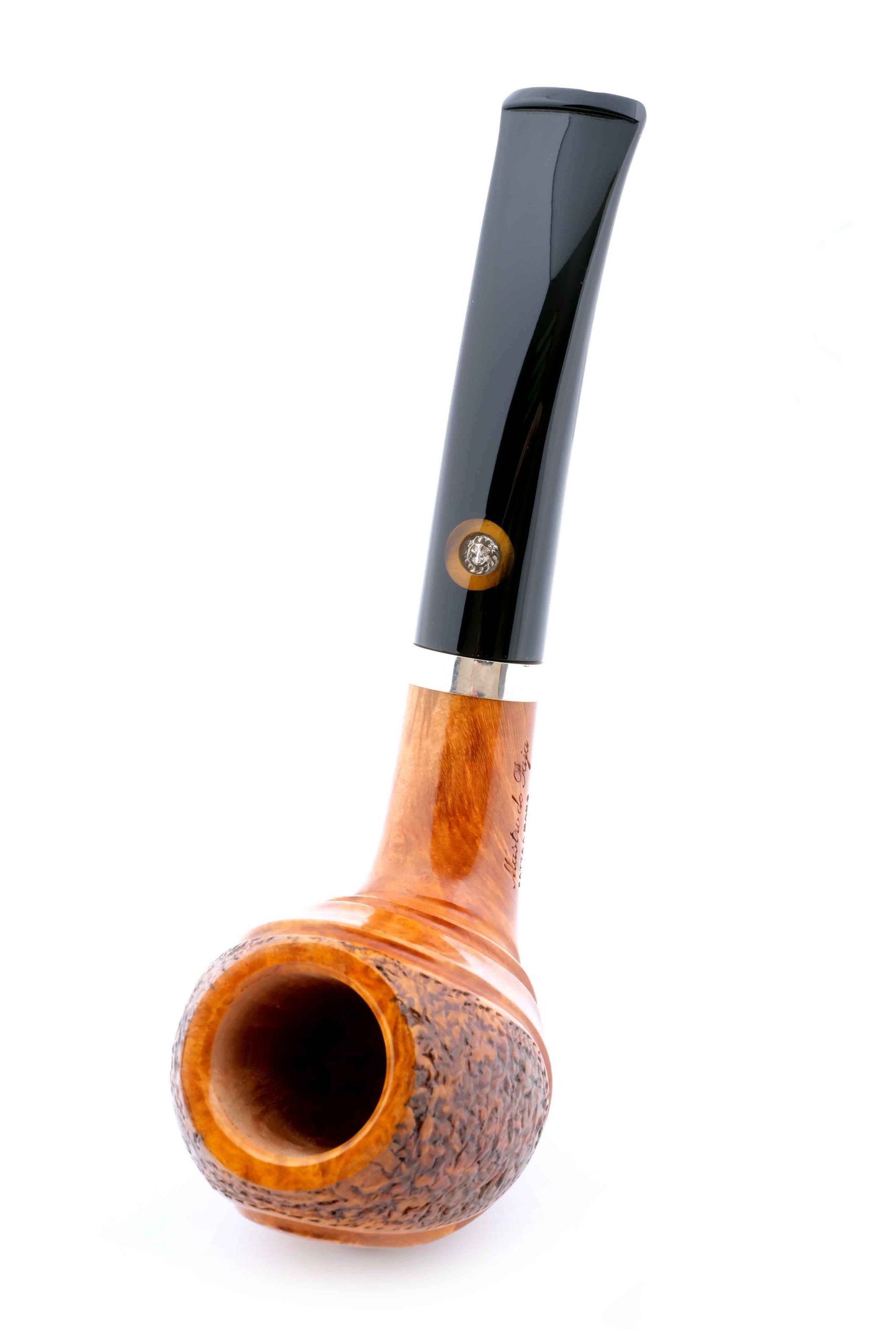 Трубка из мастерской Мастро де Пайа. Принадлежит к лимитированной серии Unica, где каждый экземпляр неповторим, имея свой индивидуальный дизайн. Частичная рустировка придает объем и увеличение поверхности охлаждения в дополнение к натуральному рисунку бриара на чаше.