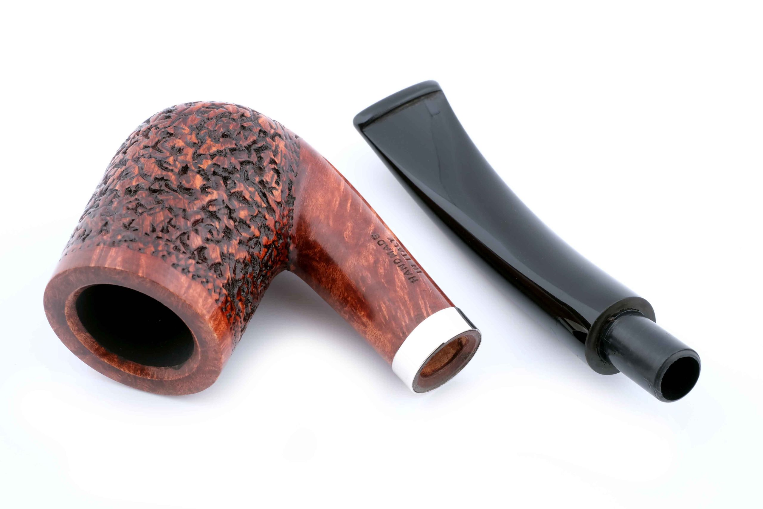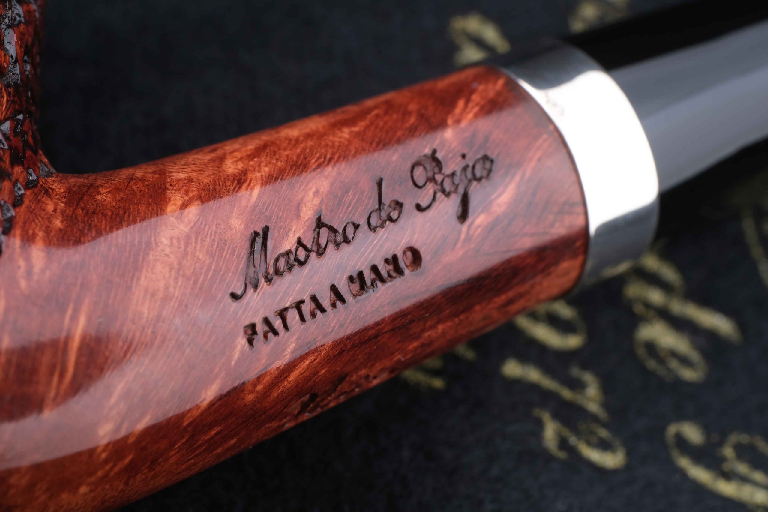 Классическая легкая трубка из мастерской Мастро де Пайа. Принадлежит к лимитированной серии Unica, где каждый экземпляр неповторим, имея свой индивидуальный дизайн. Рустировка придает объем и увеличение поверхности охлаждения в дополнение к натуральному рисунку бриара на чаше.