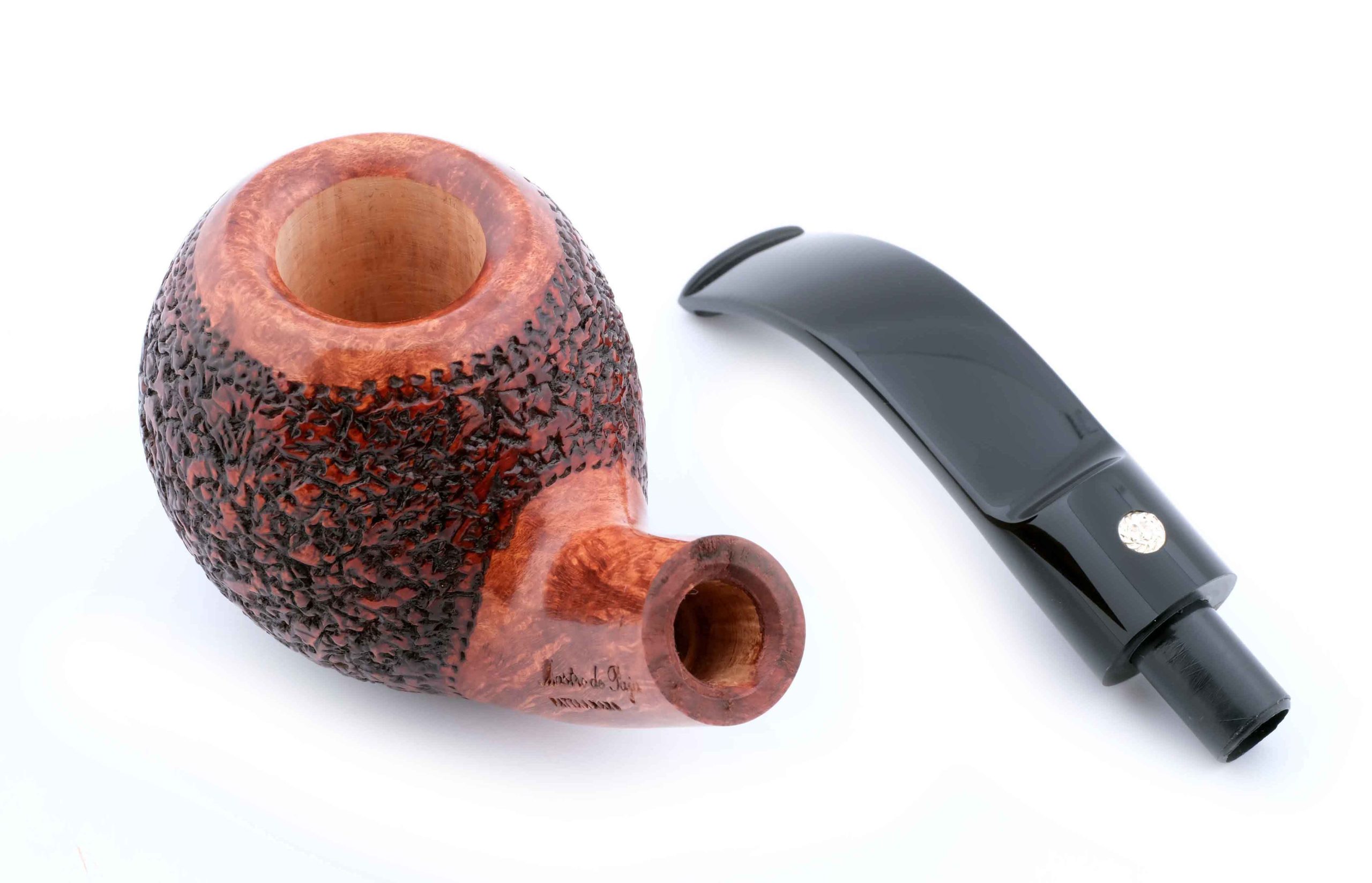Классическая трубка из мастерской Мастро де Пайа. Принадлежит к лимитированной серии Unica, где каждый экземпляр неповторим, имея свой индивидуальный дизайн. Рустировка придает объем и увеличение поверхности охлаждения в дополнение к натуральному рисунку бриара на чаше.