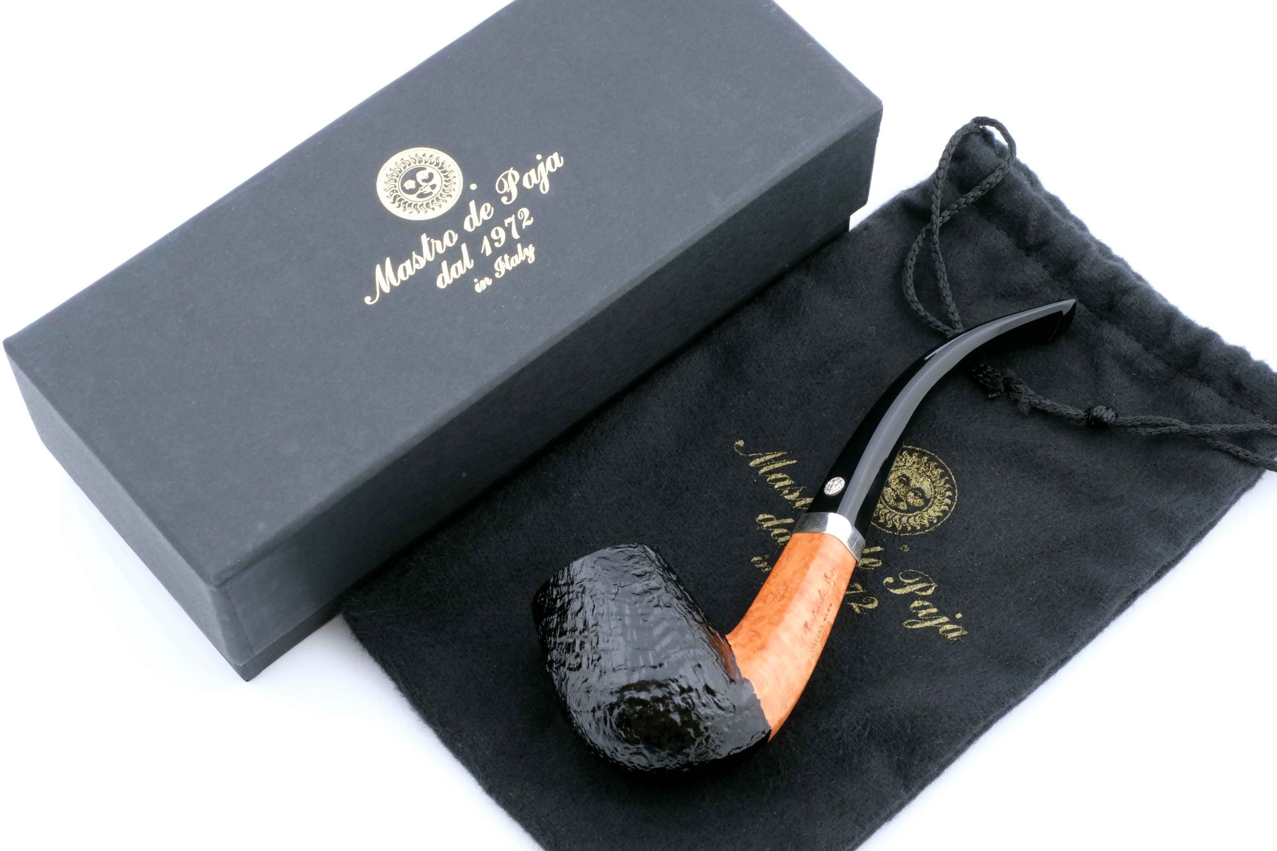 Классическая легкая трубка из мастерской Мастро де Пайа. Принадлежит к лимитированной серии Unica, где каждый экземпляр неповторим, имея свой индивидуальный дизайн. Отделка чашки Сэндбласт придает объем и увеличение поверхности охлаждения в дополнение к натуральному рисунку бриара на чаше.