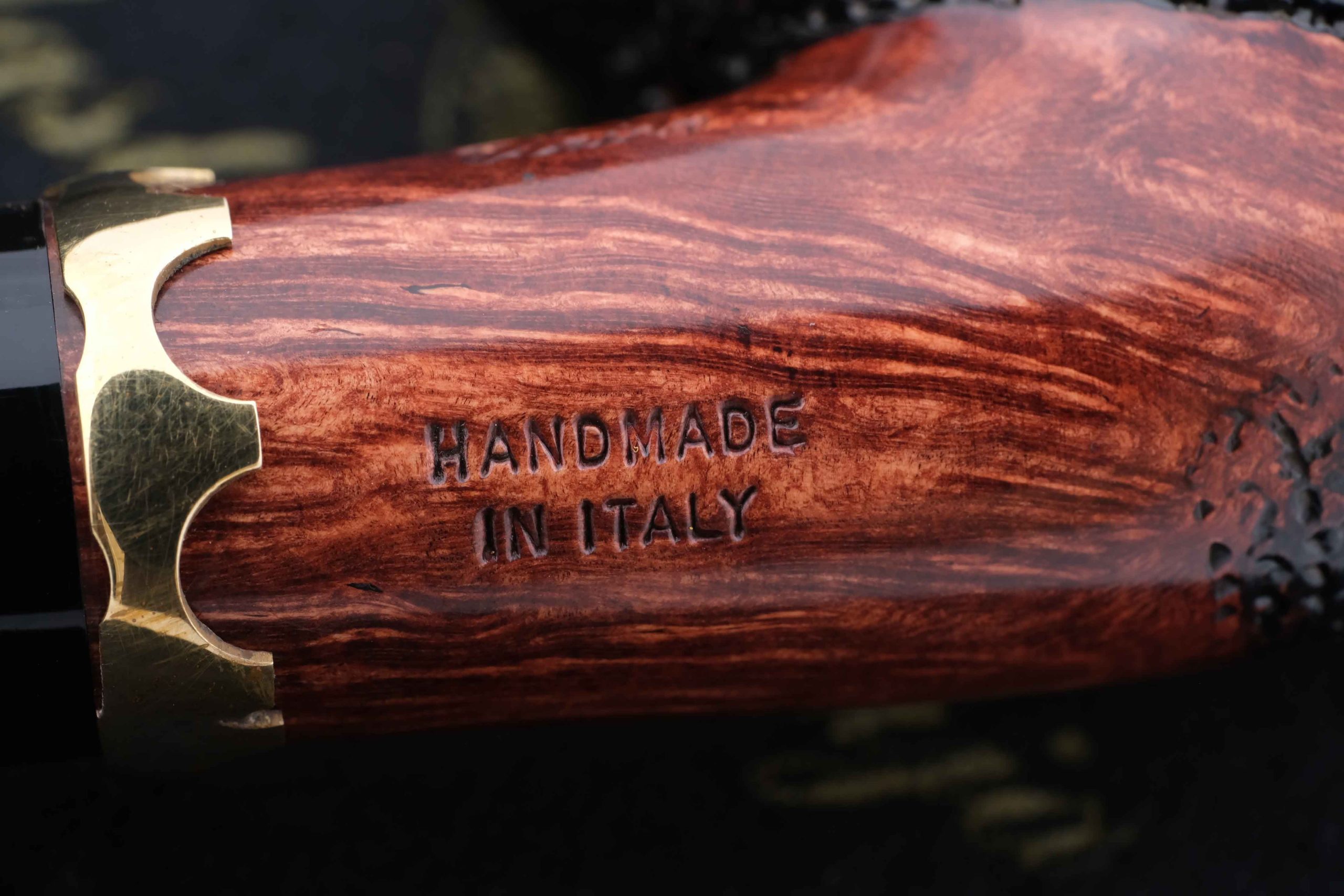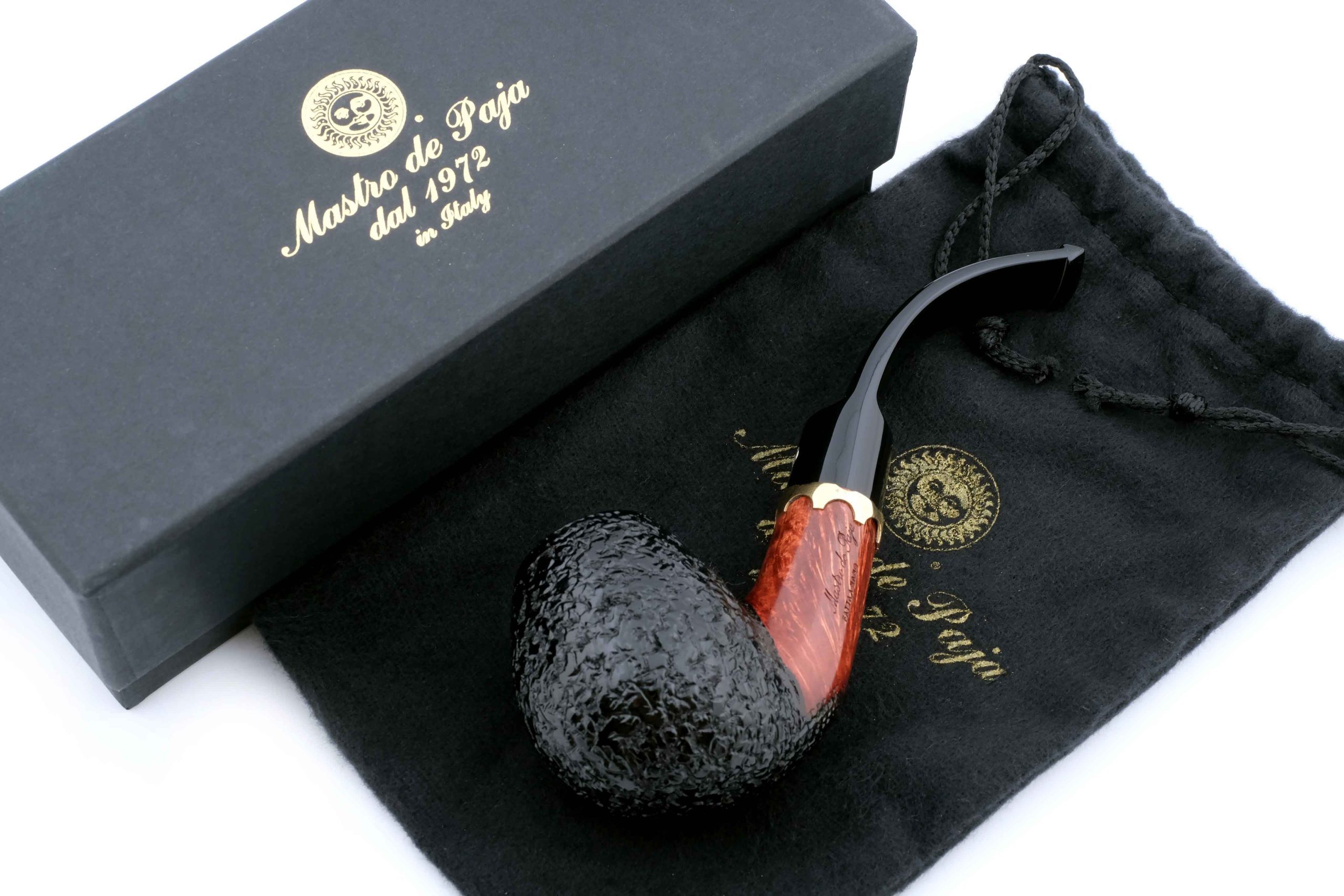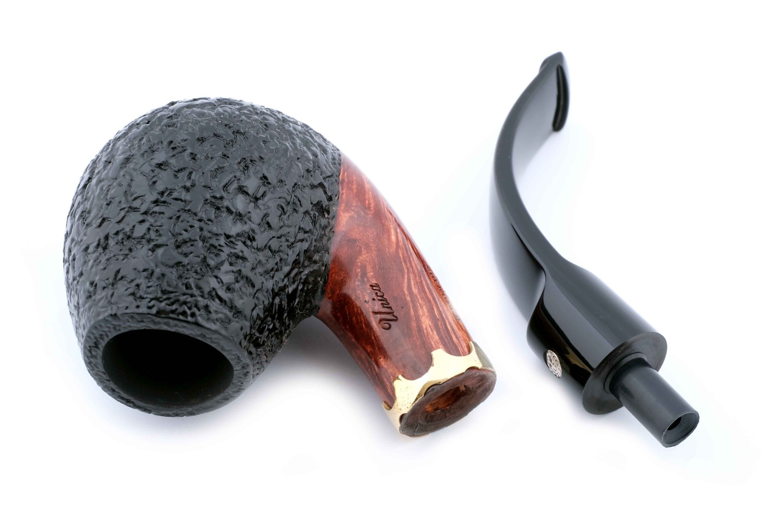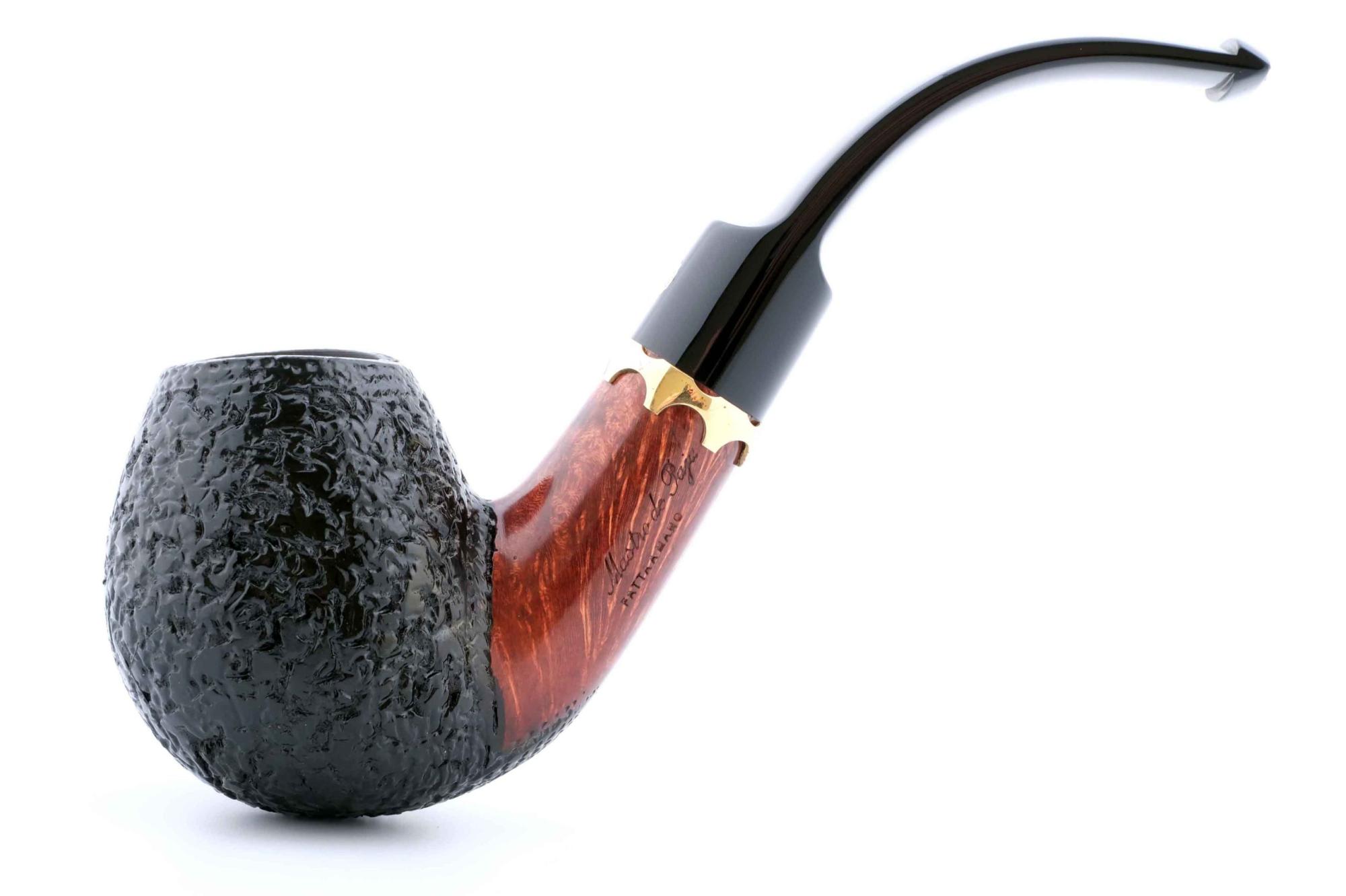 Трубка из мастерской Мастро де Пайа. Принадлежит к лимитированной серии Unica, где каждый экземпляр неповторим, имея свой индивидуальный дизайн. Кольцо на чубуке - ювелирная латунь.