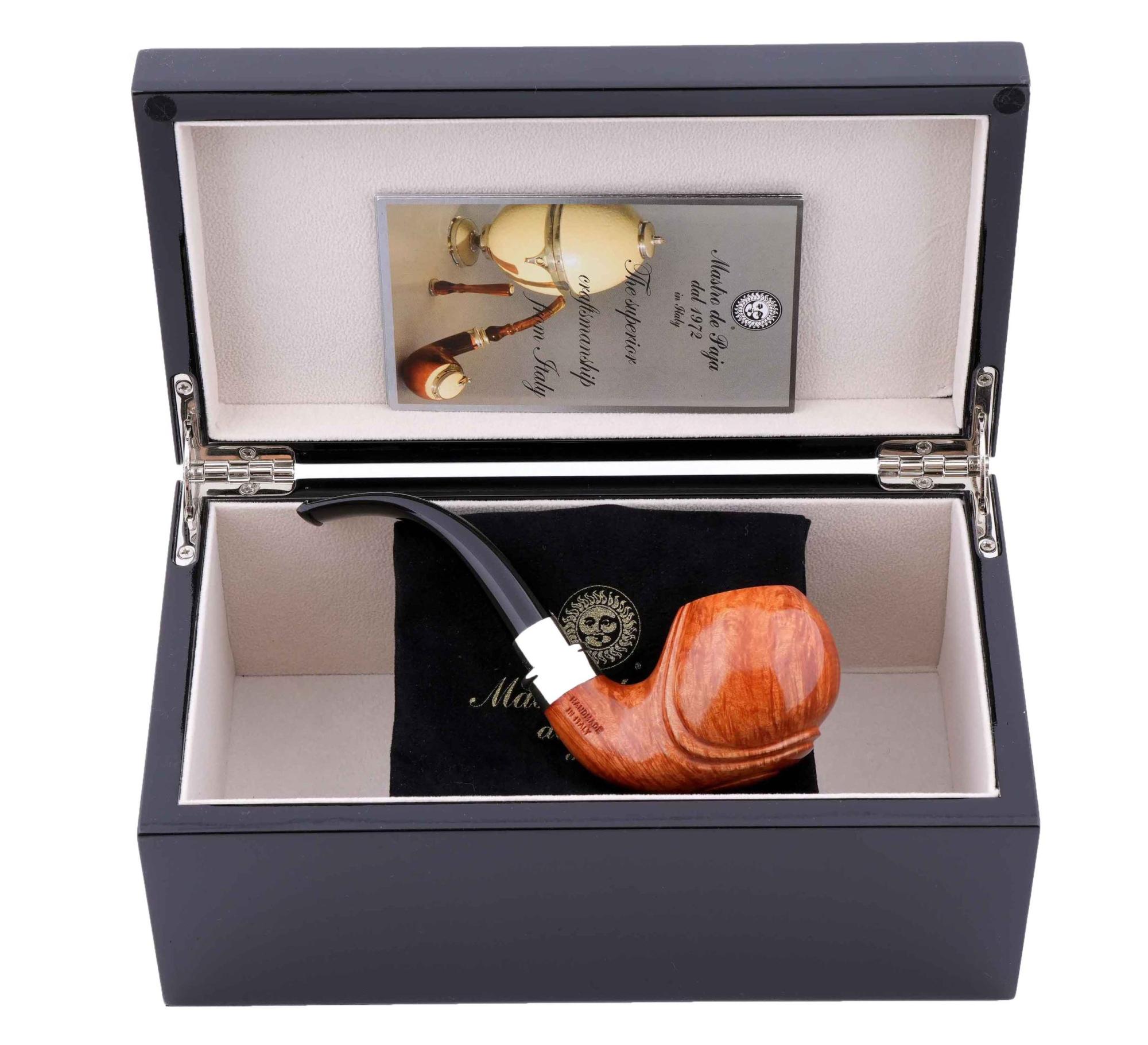 В комплекте подарочная шкатулка, фирменный кисет и буклет компании Mastro de Paja. Ручная работа, единственный экземпляр.