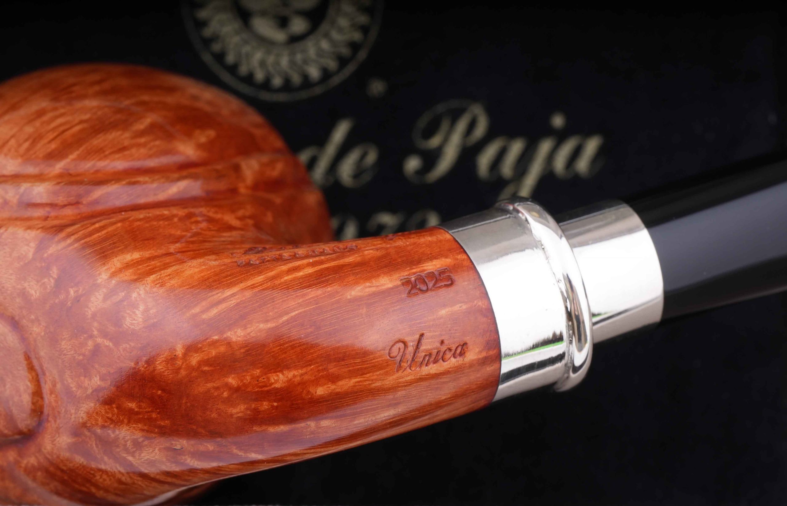 Оригинальная трубка из мастерской Мастро де Пайа. Принадлежит к лимитированной серии Unica, где каждый экземпляр неповторим, имея свой индивидуальный дизайн.