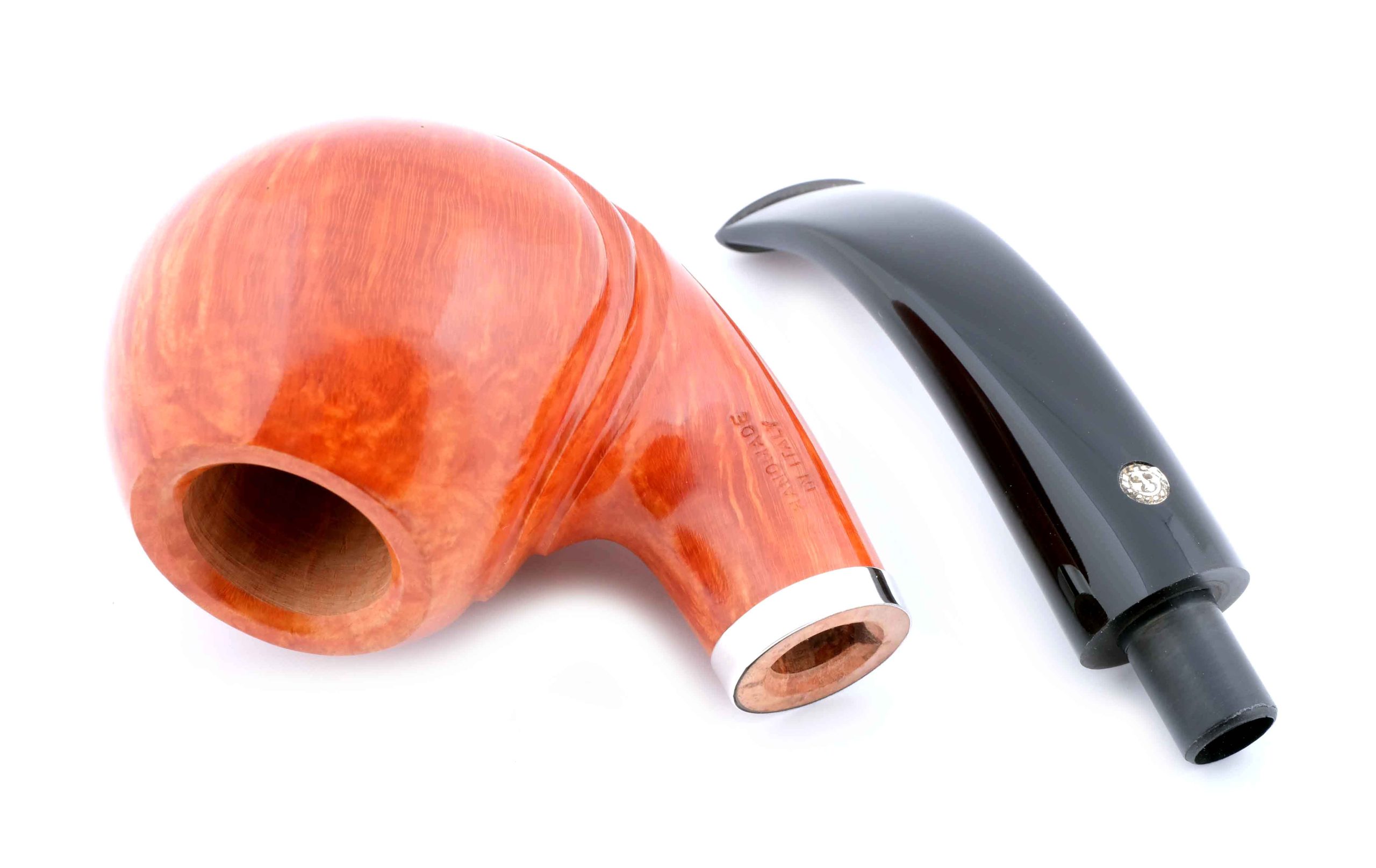 Оригинальная трубка высшего грэйда из мастерской Мастро де Пайа. Принадлежит к лимитированной серии Unica, где каждый экземпляр неповторим, имея свой индивидуальный дизайн. Светлая трубка имеет натуральный цвет бриара, покрытого только натуральным карнаубским воском.