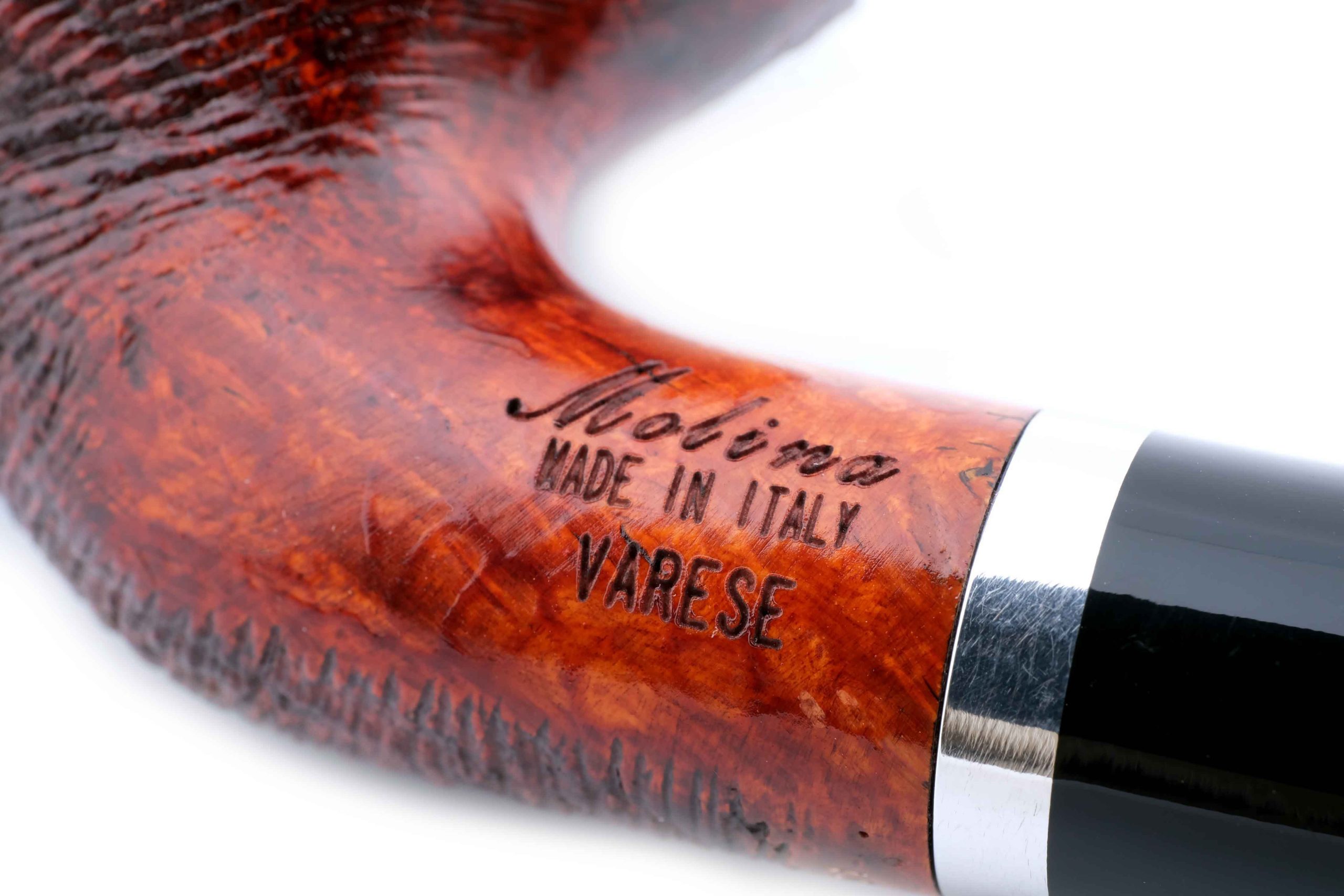 Трубка серии Varese от одного из старейших производителей курительных трубок в Италии - мастерской Molina из города Варезе в Ломбардии. Внешняя отделка Pettinata ("расческа", ит.) - особая техника мелкого рустирования, придающая поверхности шелковистый вид "причесанного" меха. Трубка приятно держится в руке, а увеличенная за счет рустирования площадь поверхности способствует лучшему охлаждению трубки при курении.