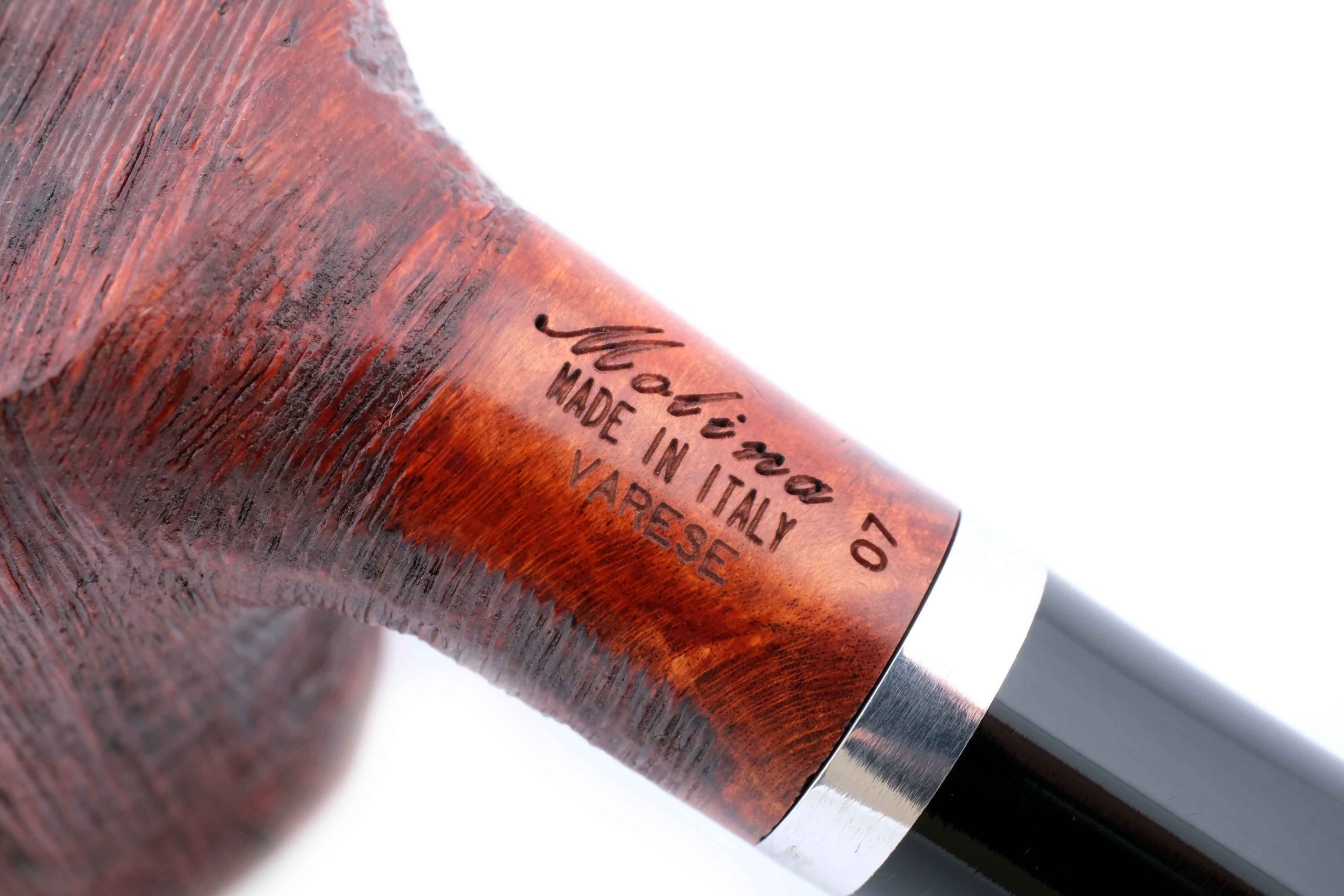 Трубка серии Varese от одного из старейших производителей курительных трубок в Италии - мастерской Molina из города Варезе в Ломбардии. Внешняя отделка Pettinata ("расческа", ит.) - особая техника мелкого рустирования, придающая поверхности шелковистый вид "причесанного" меха. Трубка приятно держится в руке, а увеличенная за счет рустирования площадь поверхности способствует лучшему охлаждению трубки при курении.