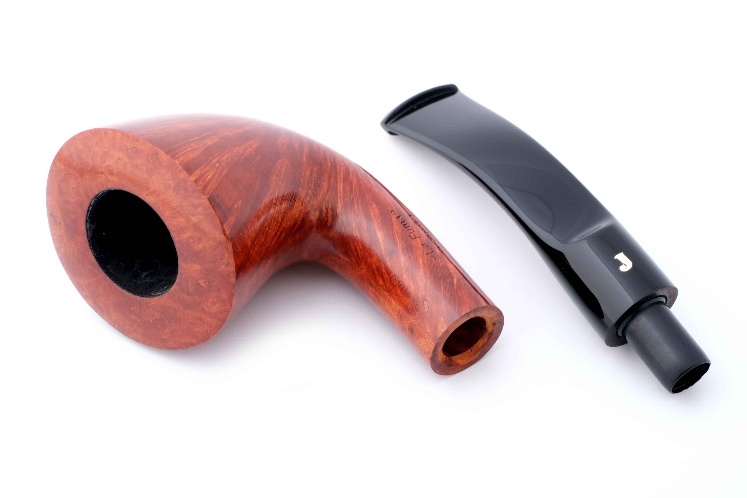 На трубке выбит девиз La Fuma fiche tira («Дымится пока курится», ит.), маркировки: Ser Jacopo, Hand made in Italy
