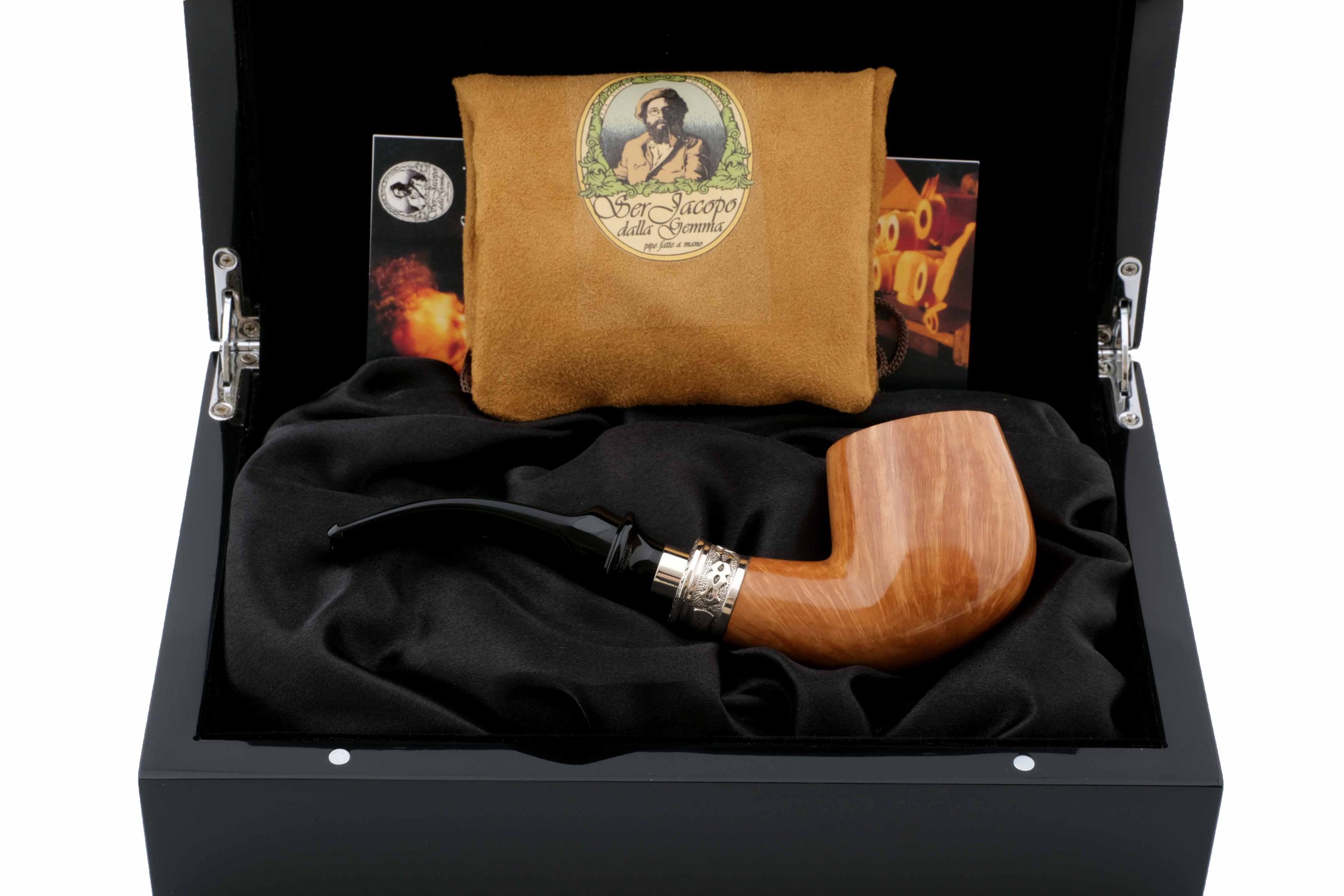 В комплекте итальянская подарочная шкатулка в черном глянцевом лаке, кисет для трубки и буклеты компании Ser Jacopo.
