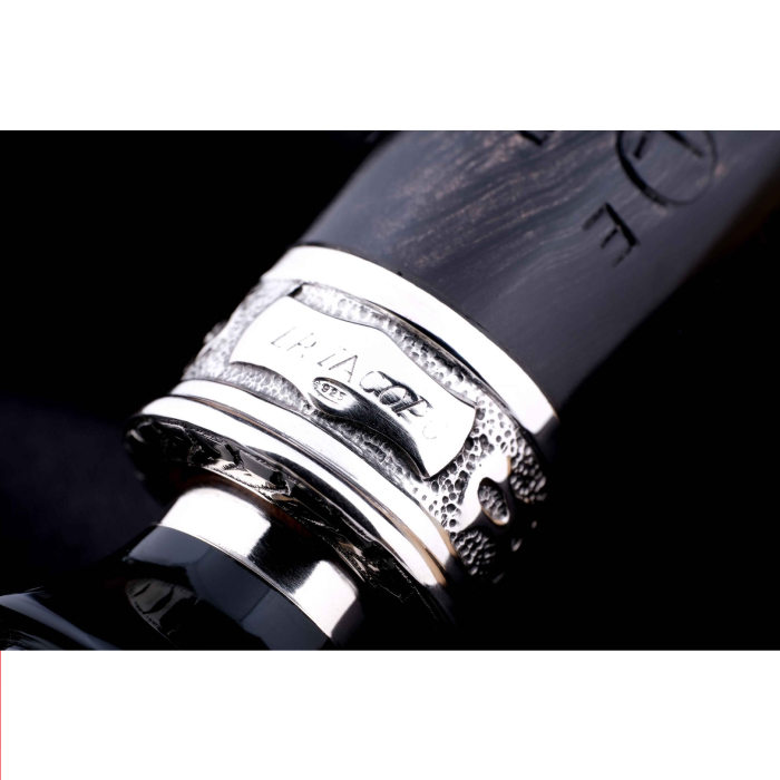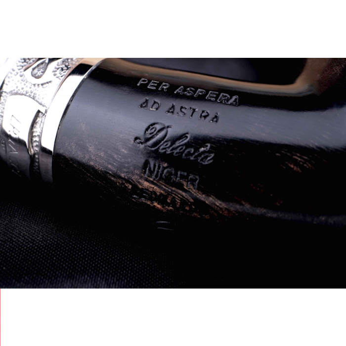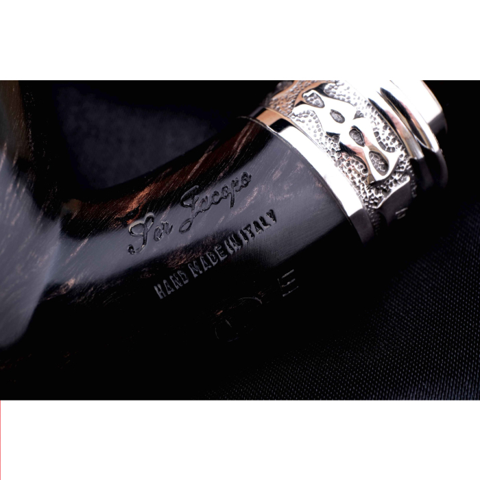 На чубуке снизу и по бокам выбит девиз мастерской PER ASPERA AD ASTRA («Через тернии к звездам», лат.), маркировки: Ser Jacopo, Hand made in Italy, градация L1E, серия Delecta Leonardo.