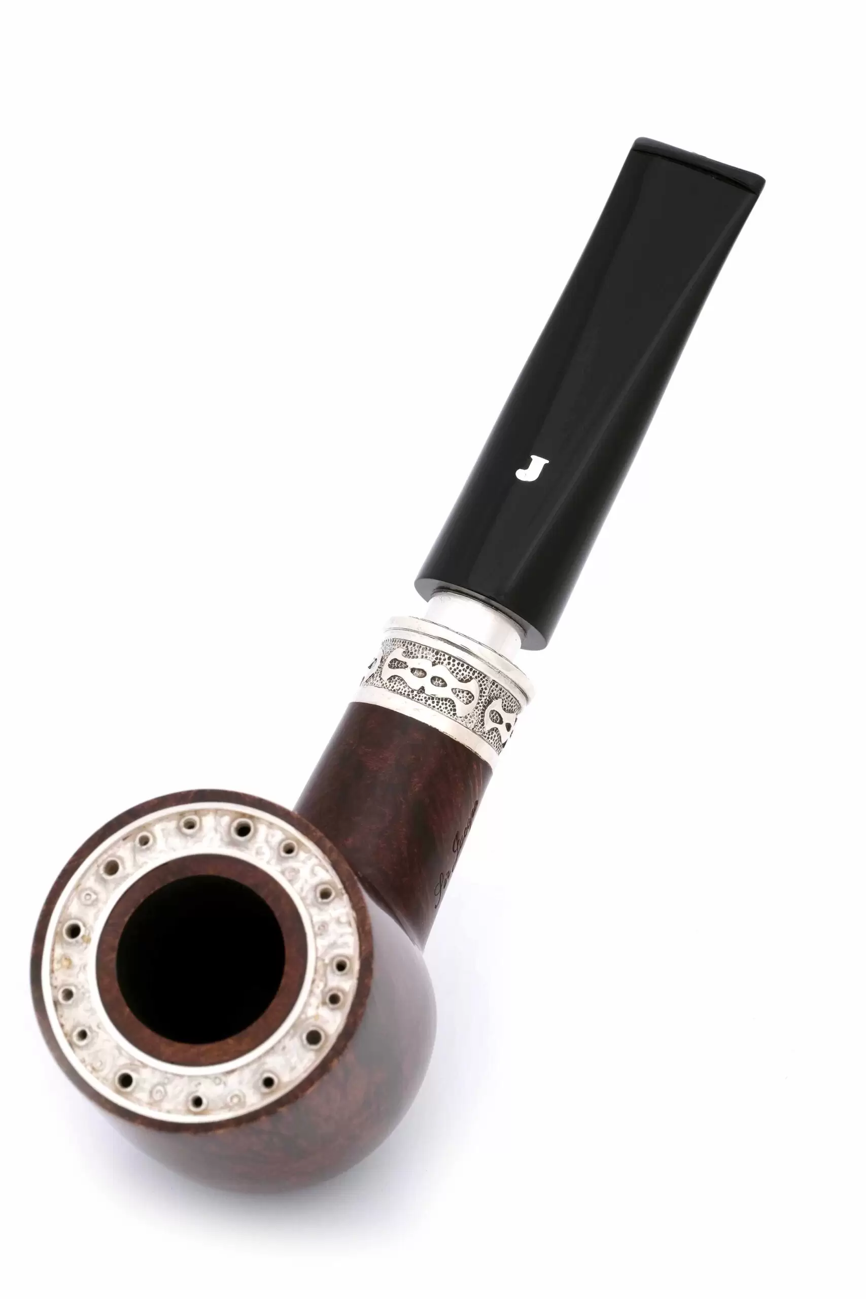 Джанкарло разработал аналогичную, но уже из бриара: в стенках чашки сделана кольцевая проточка, закрытая сверху серебряной крышкой с отверстиями для отвода тепла.