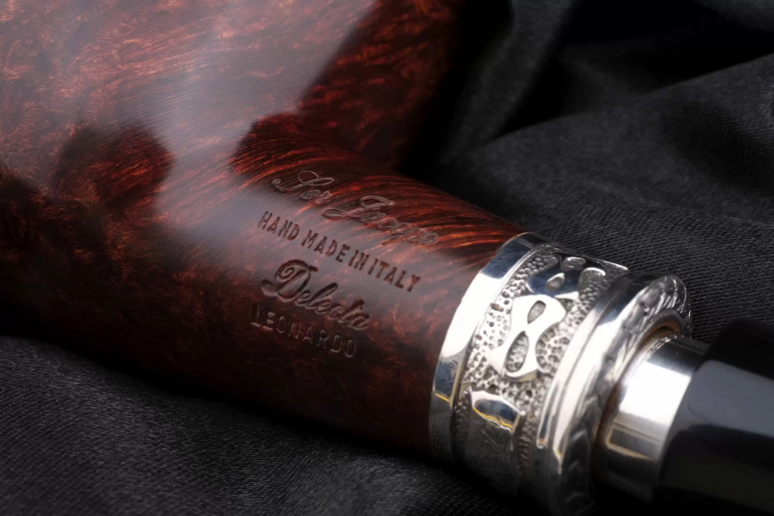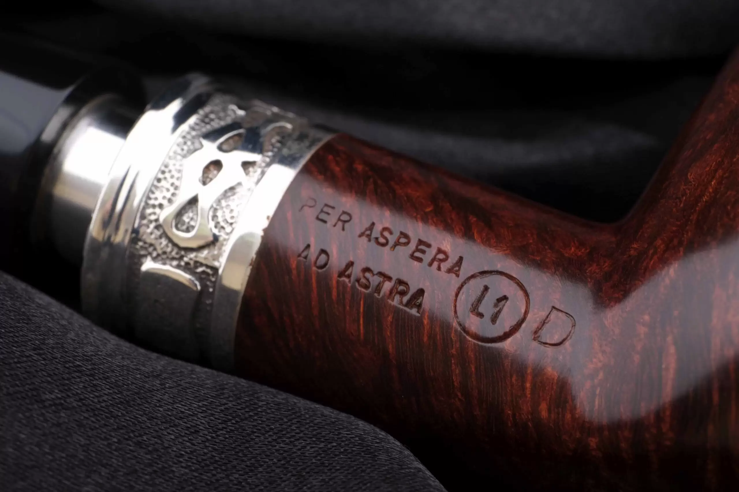 На чубуке снизу и по бокам выбит девиз мастерской PER ASPERA AD ASTRA («Через тернии к звездам», лат.), маркировки: Ser Jacopo, Hand made in Italy, градация R1, серия Delecta Leonardo.