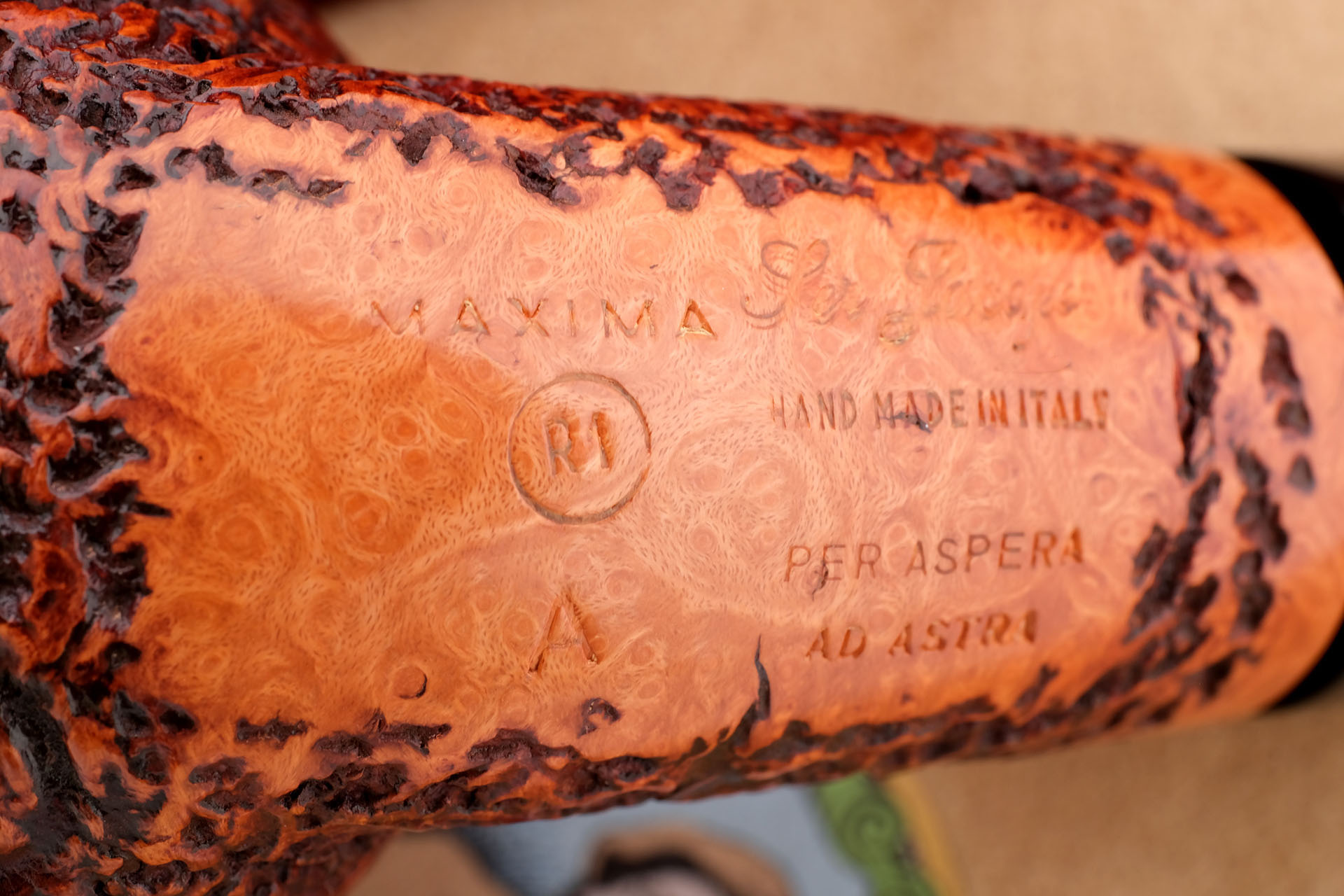 На трубке выбит девиз мастерской Ser Jacopo PER ASPERA AD ASTRA («Через тернии к звездам», лат.), маркировки: Ser Jacopo, Hand made in Italy, грэйд R1 А.