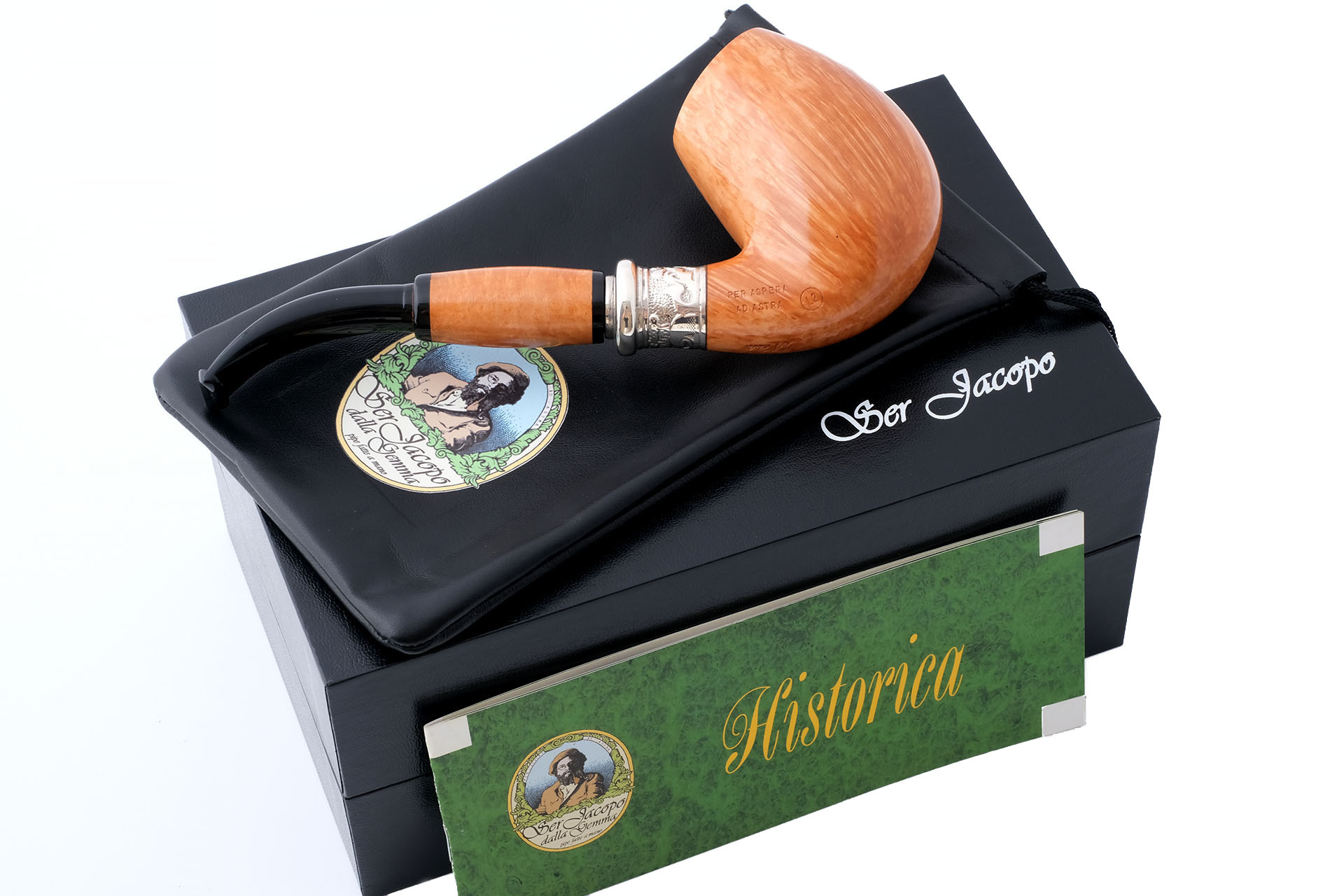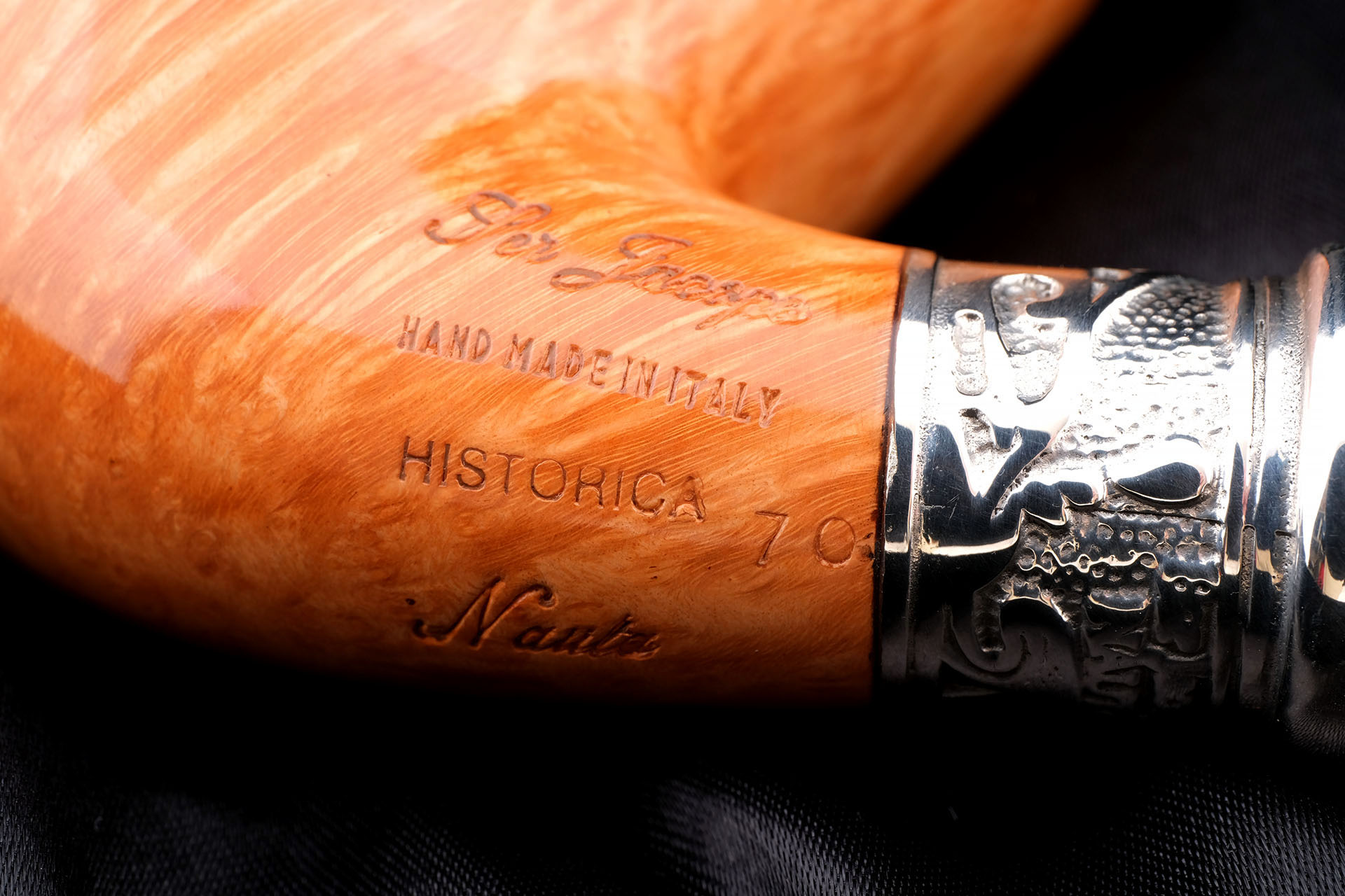 Авторская курительная трубка Historica NAUTA из серии, посвященной ранним работам Джанкарло Гуиди - основателя Ser Jacopo. Было выпущено 100 таких трубок в разных градациях. Каждый экземпляр имеет свой порядковый номер, выбитый на чубуке.
