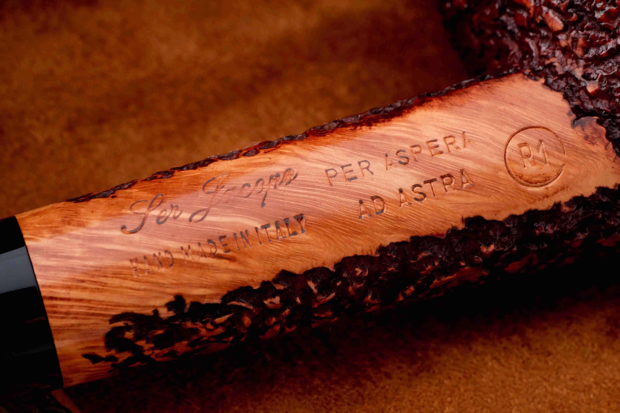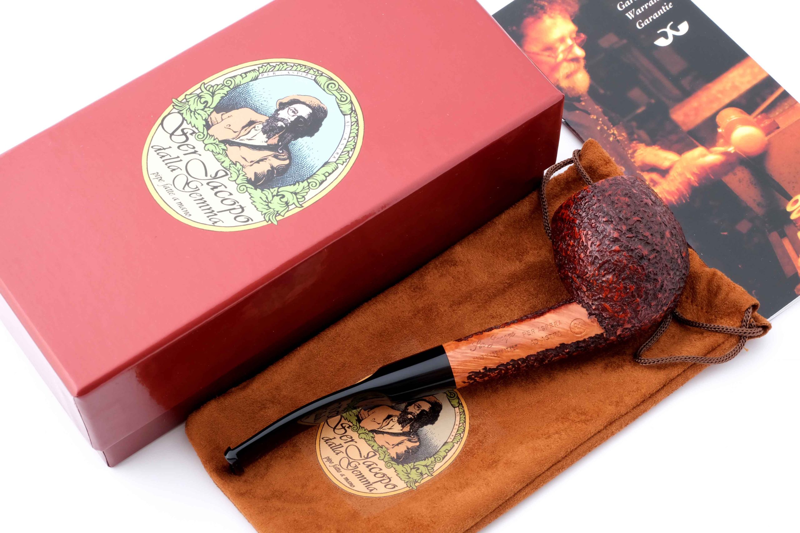 На трубке выбит девиз La Fuma fiche tira («Дымится пока курится», ит.), маркировки: Ser Jacopo, Hand made in Italy