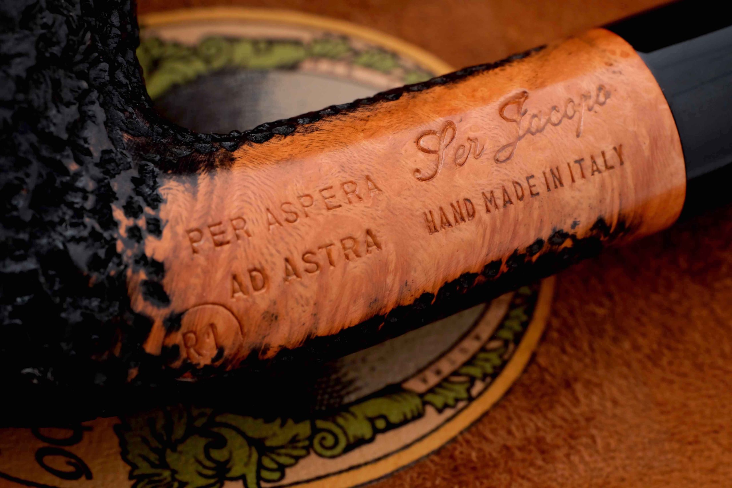На трубке выбит девиз мастерской Ser Jacopo PER ASPERA AD ASTRA («Через тернии к звездам», лат.), маркировки: Ser Jacopo, Hand made in Italy