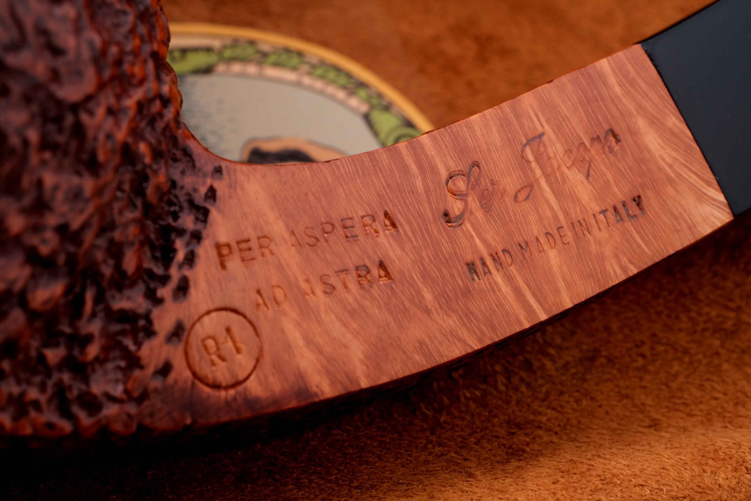 На трубке выбит девиз мастерской Ser Jacopo PER ASPERA AD ASTRA («Через тернии к звездам», лат.), маркировки: Ser Jacopo, Hand made in Italy