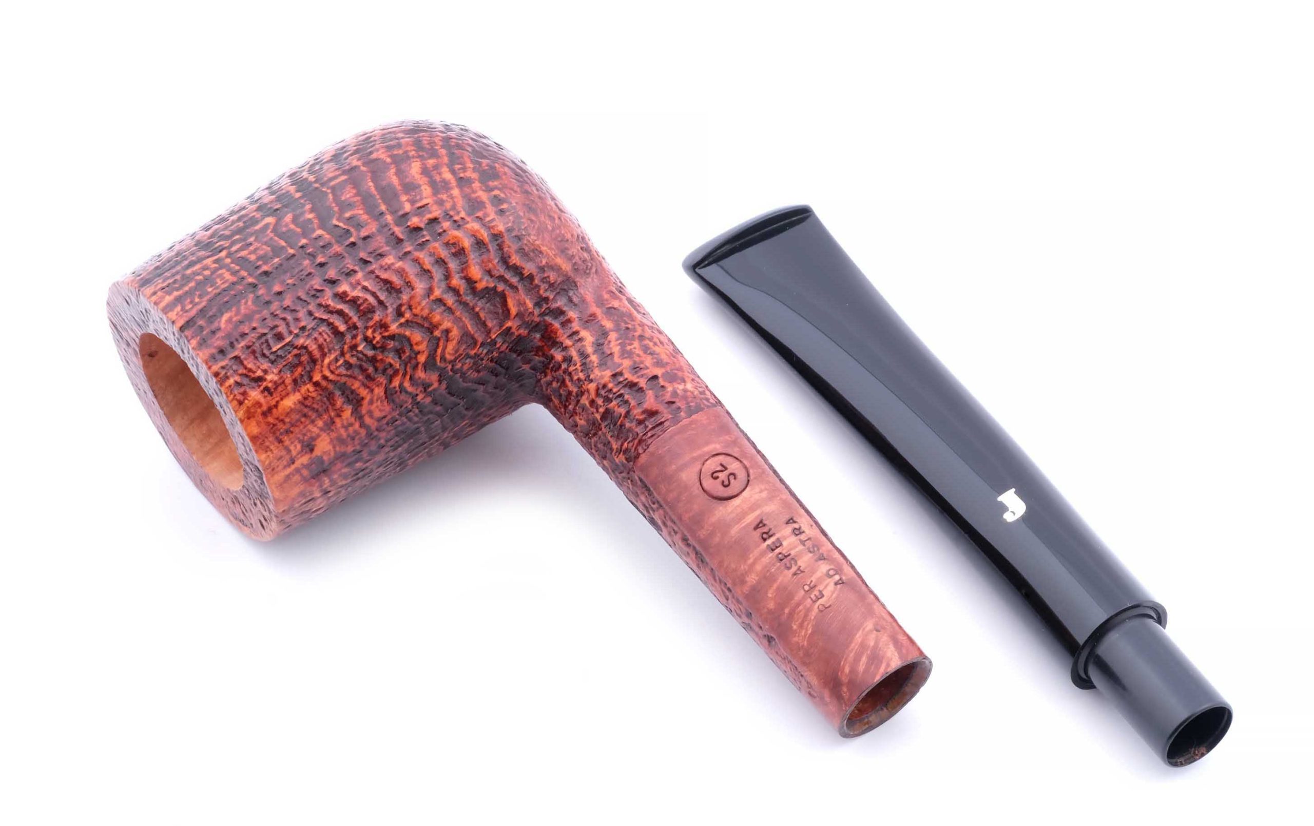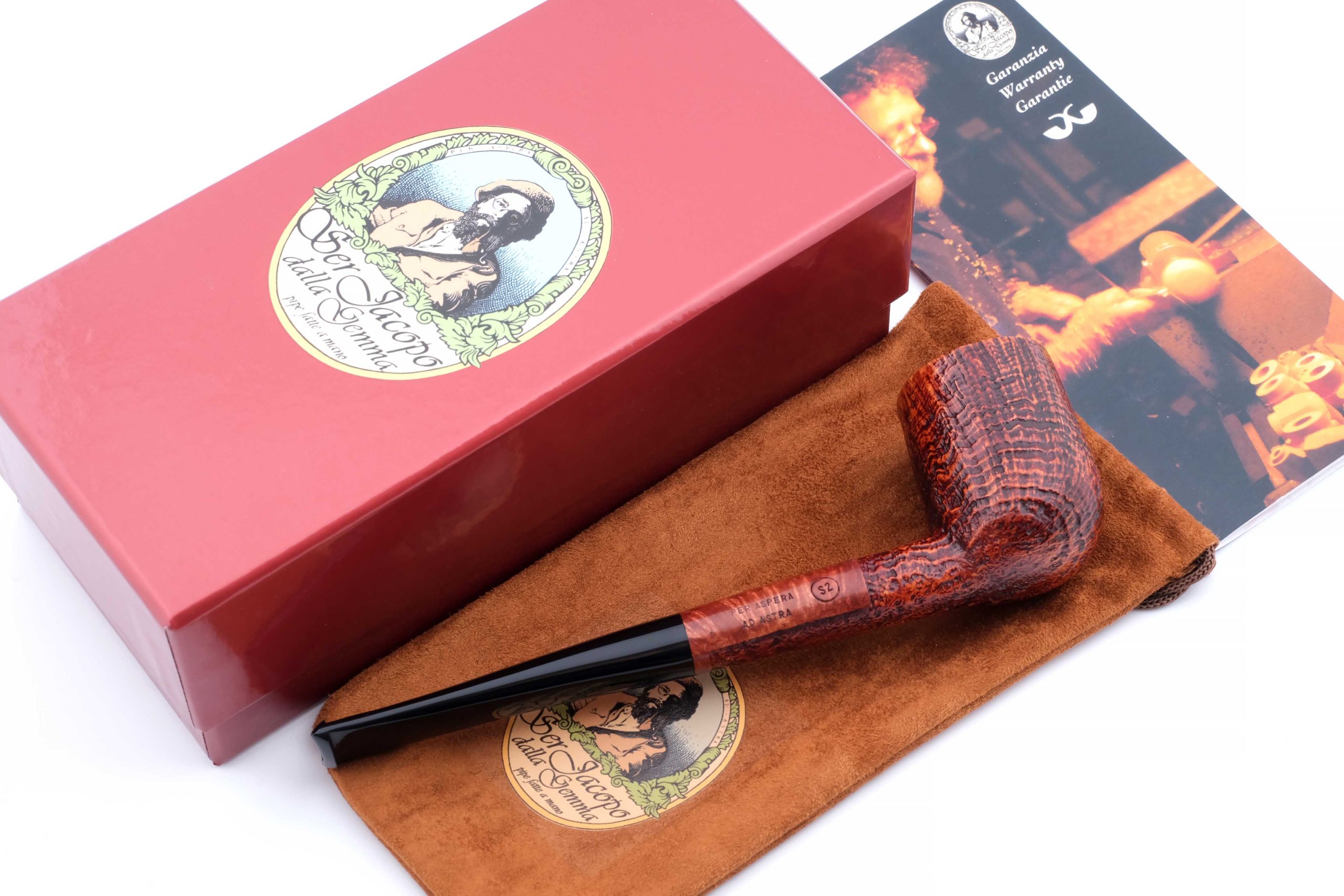 На трубке выбит девиз мастерской Ser Jacopo PER ASPERA AD ASTRA ("Через тернии к звездам", лат.), маркировки: Ser Jacopo, Hand made in Italy, грэйд S2.