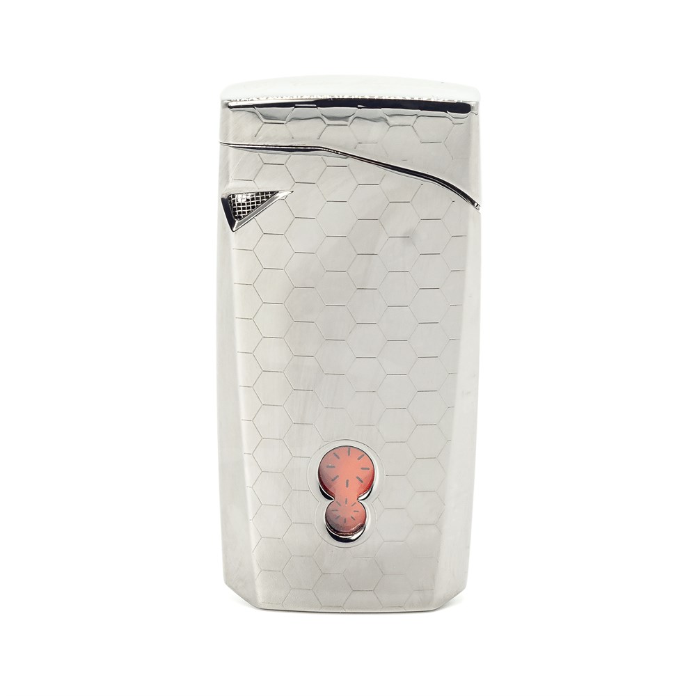 Зажигалка имеет кнопку для пьезоподжига и регулятор подачи газа.