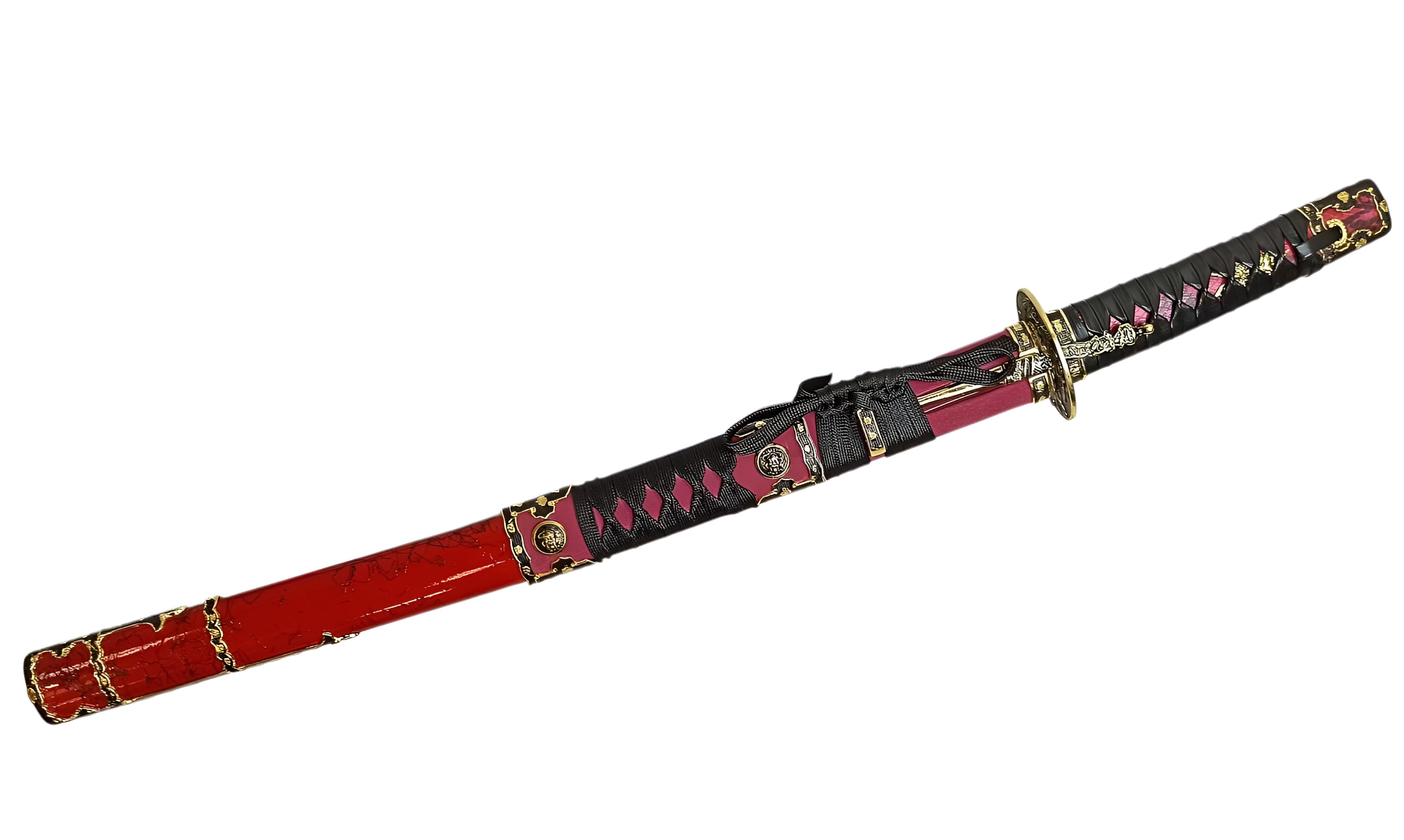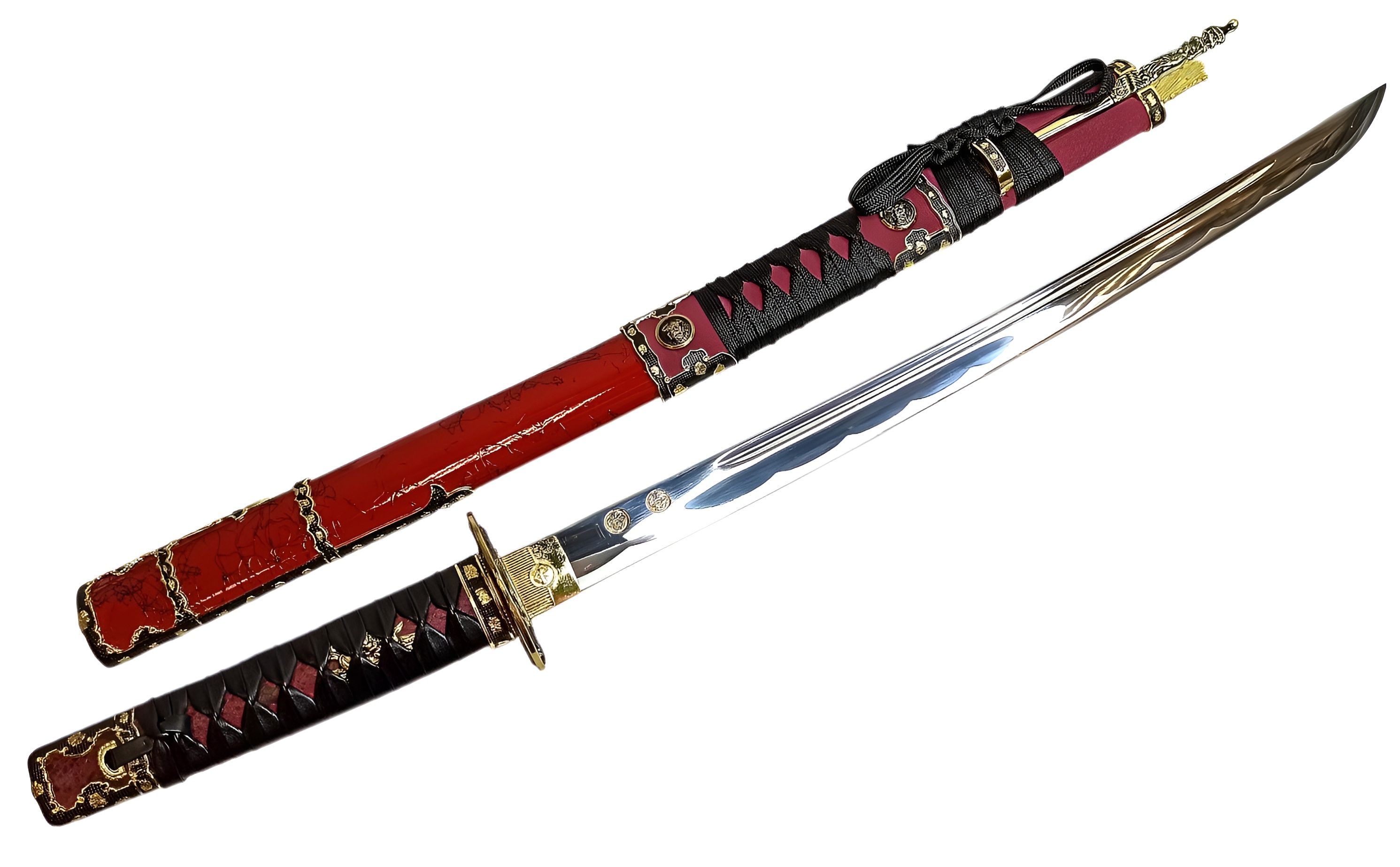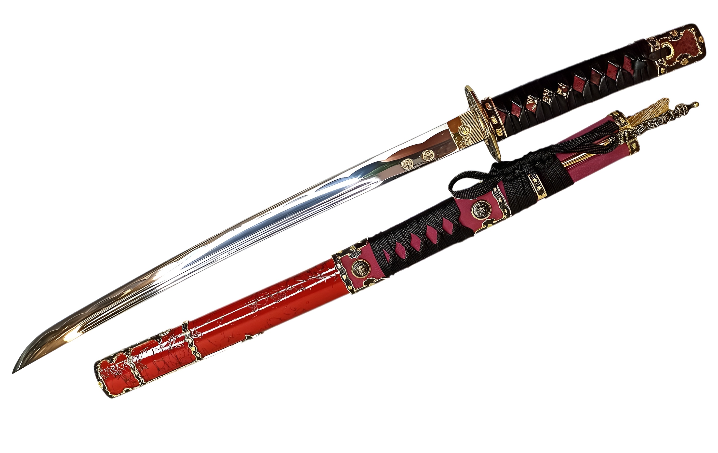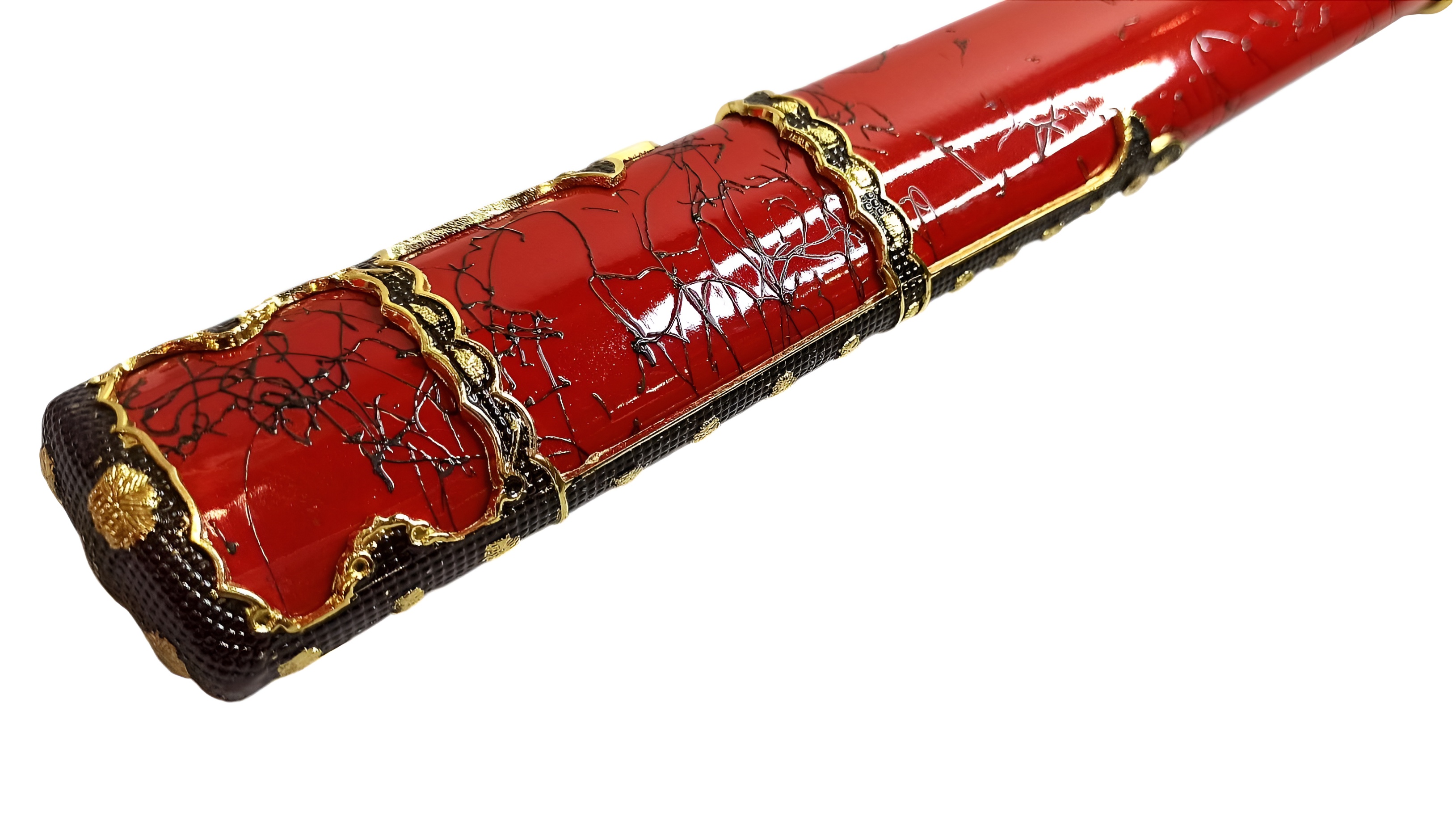 Ножны | красные лакированные (деревянные), обтянутые красной кожей, хлопковая тесьма, металл |