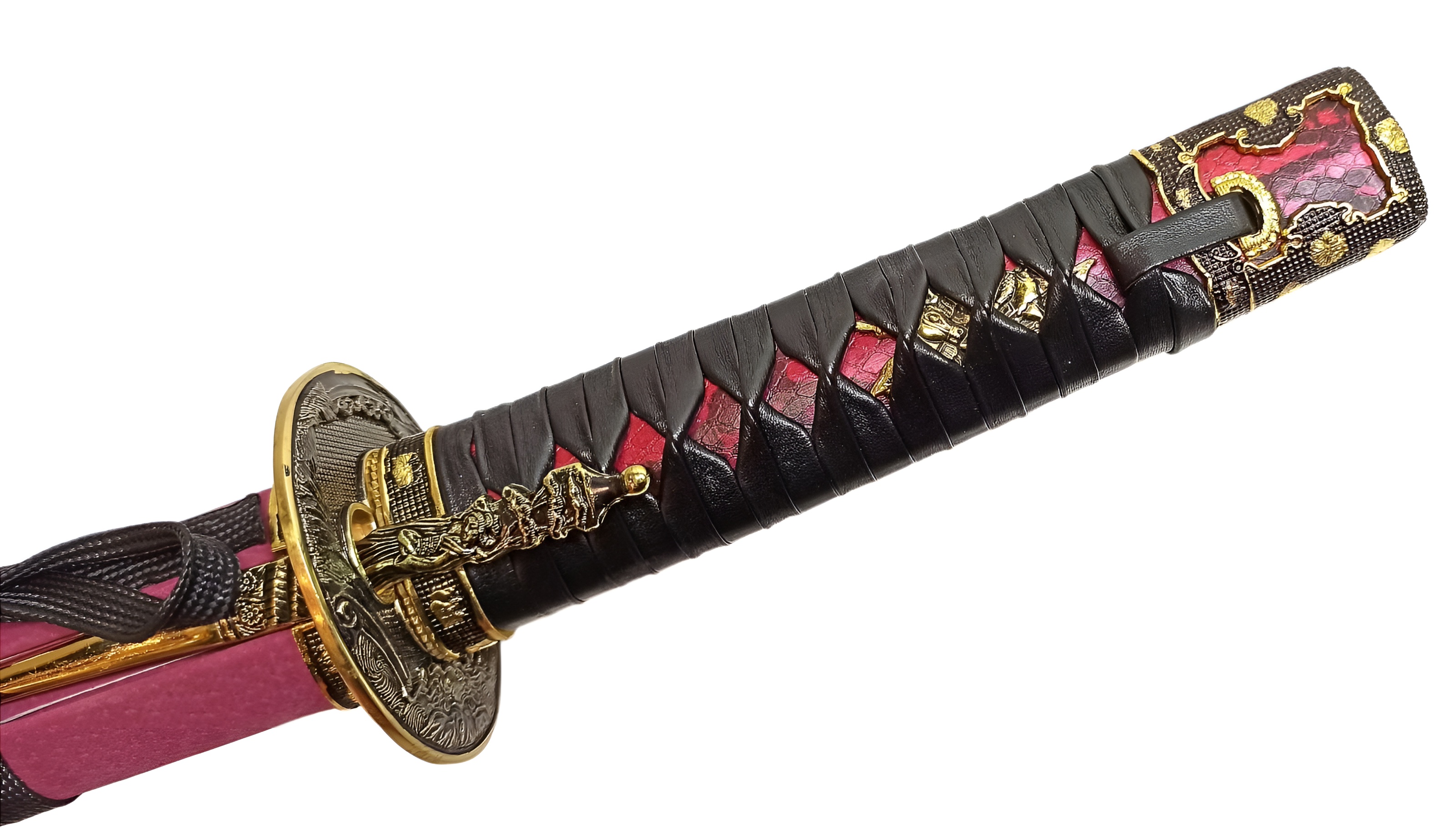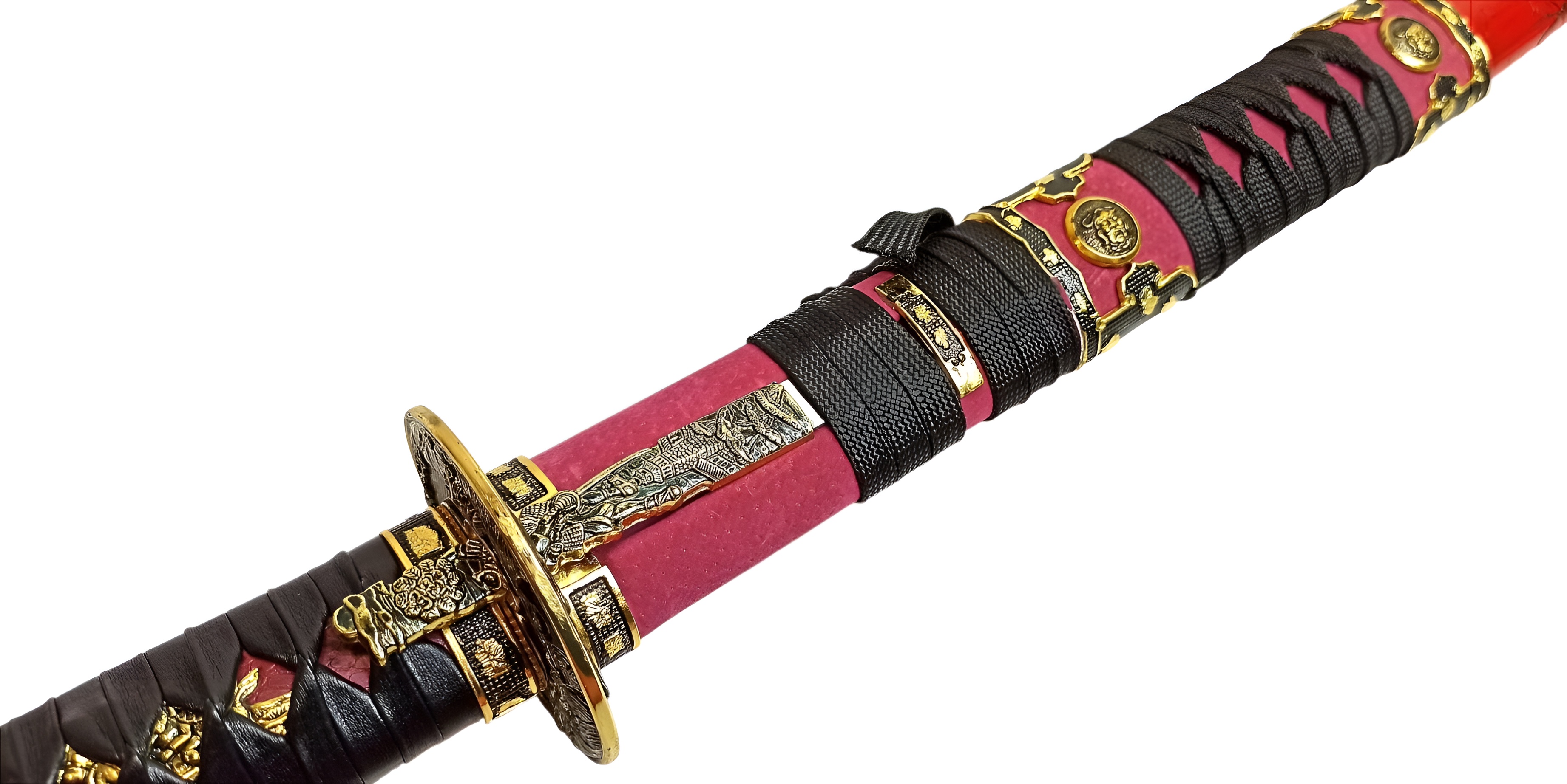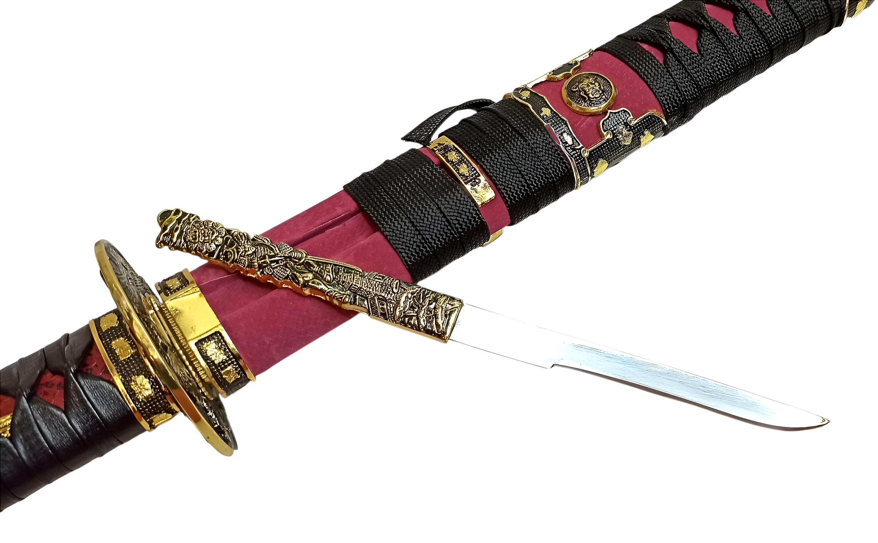 Ножны | красные лакированные (деревянные), обтянутые красной кожей, хлопковая тесьма, металл |