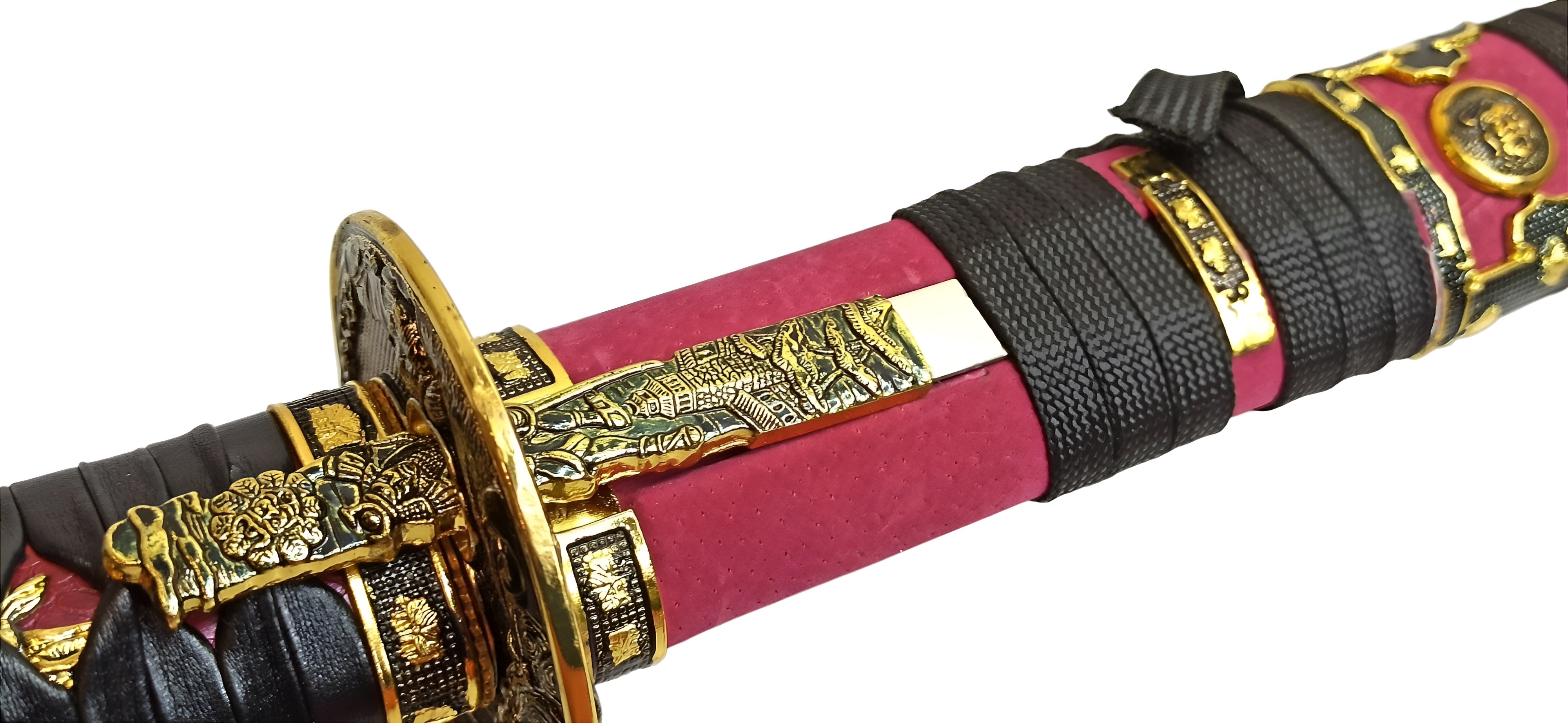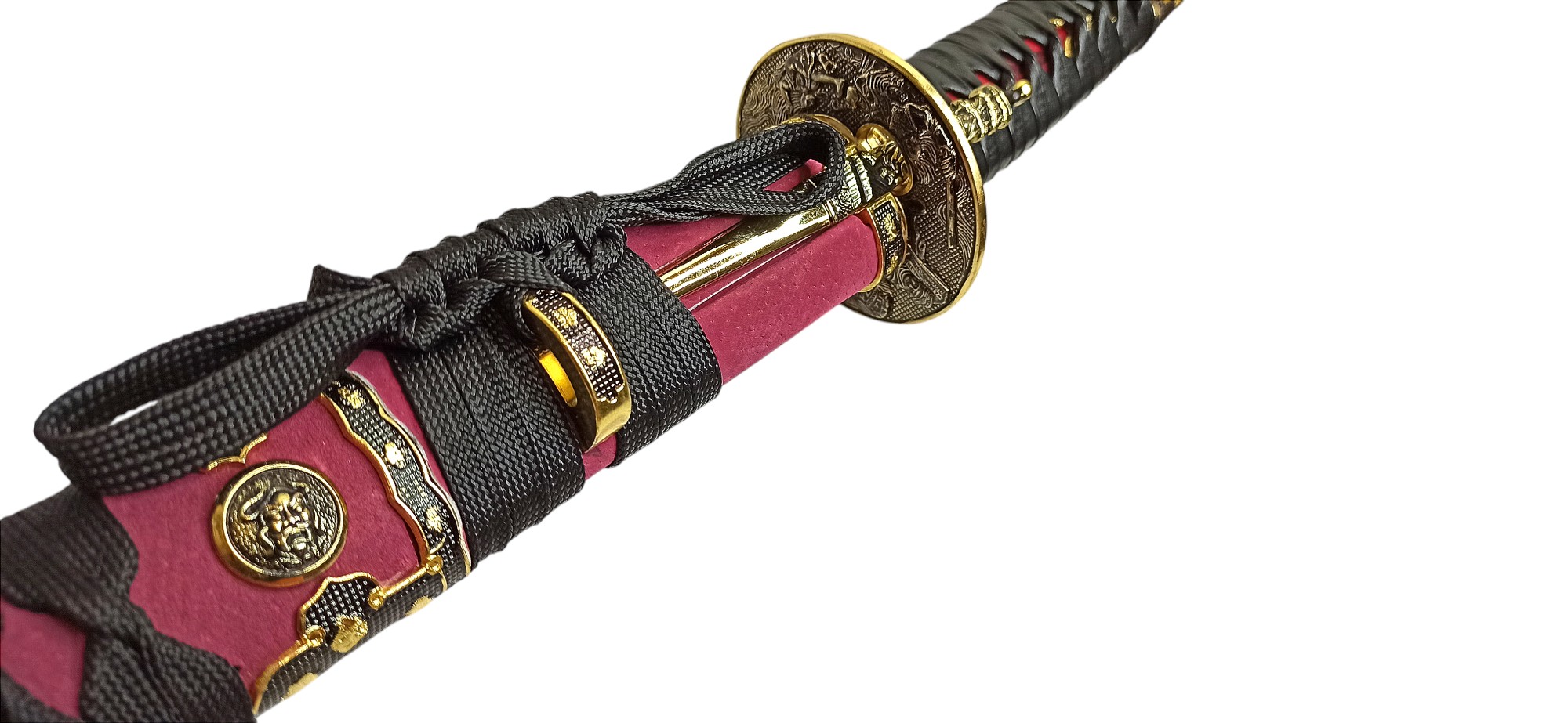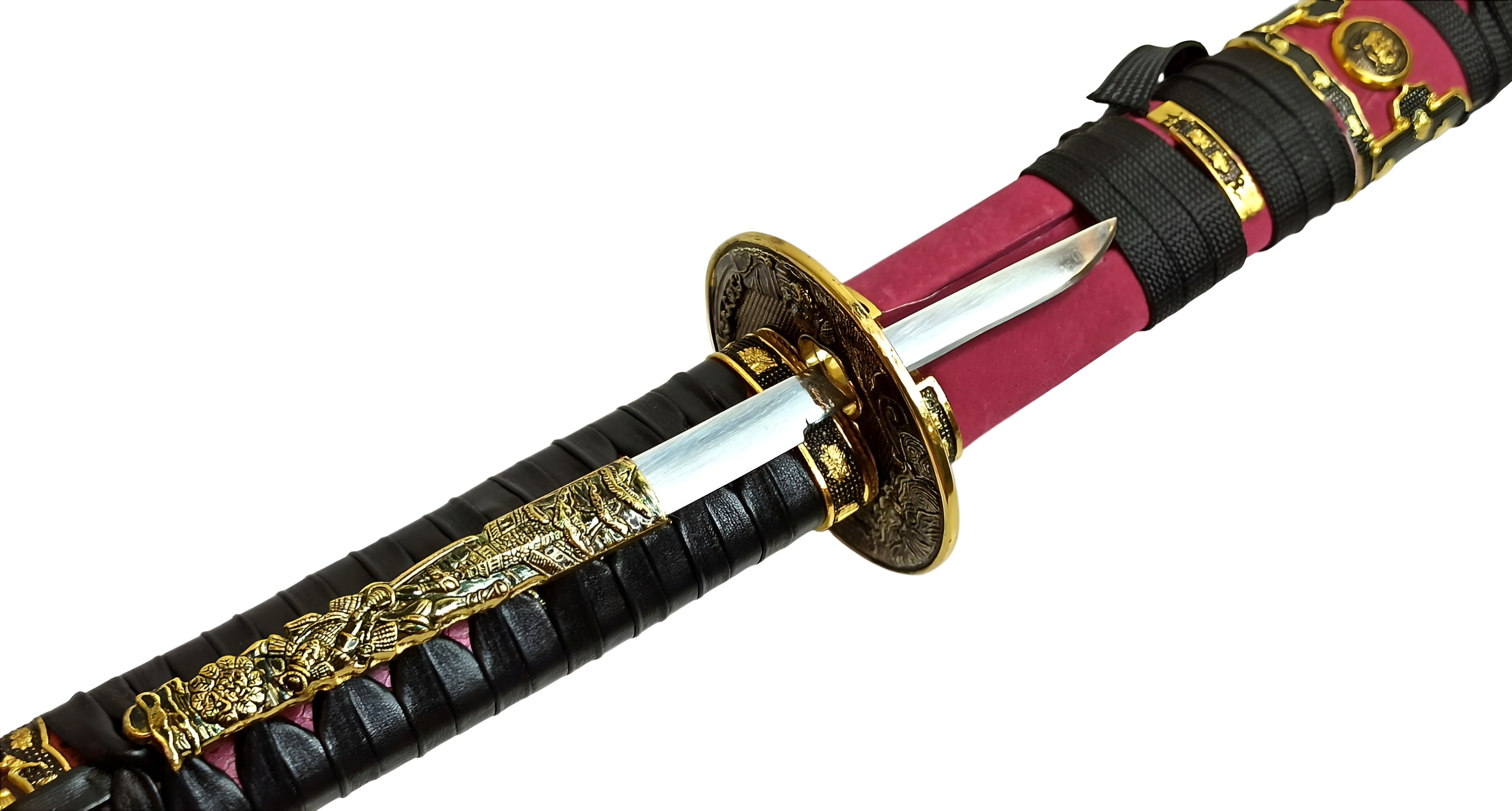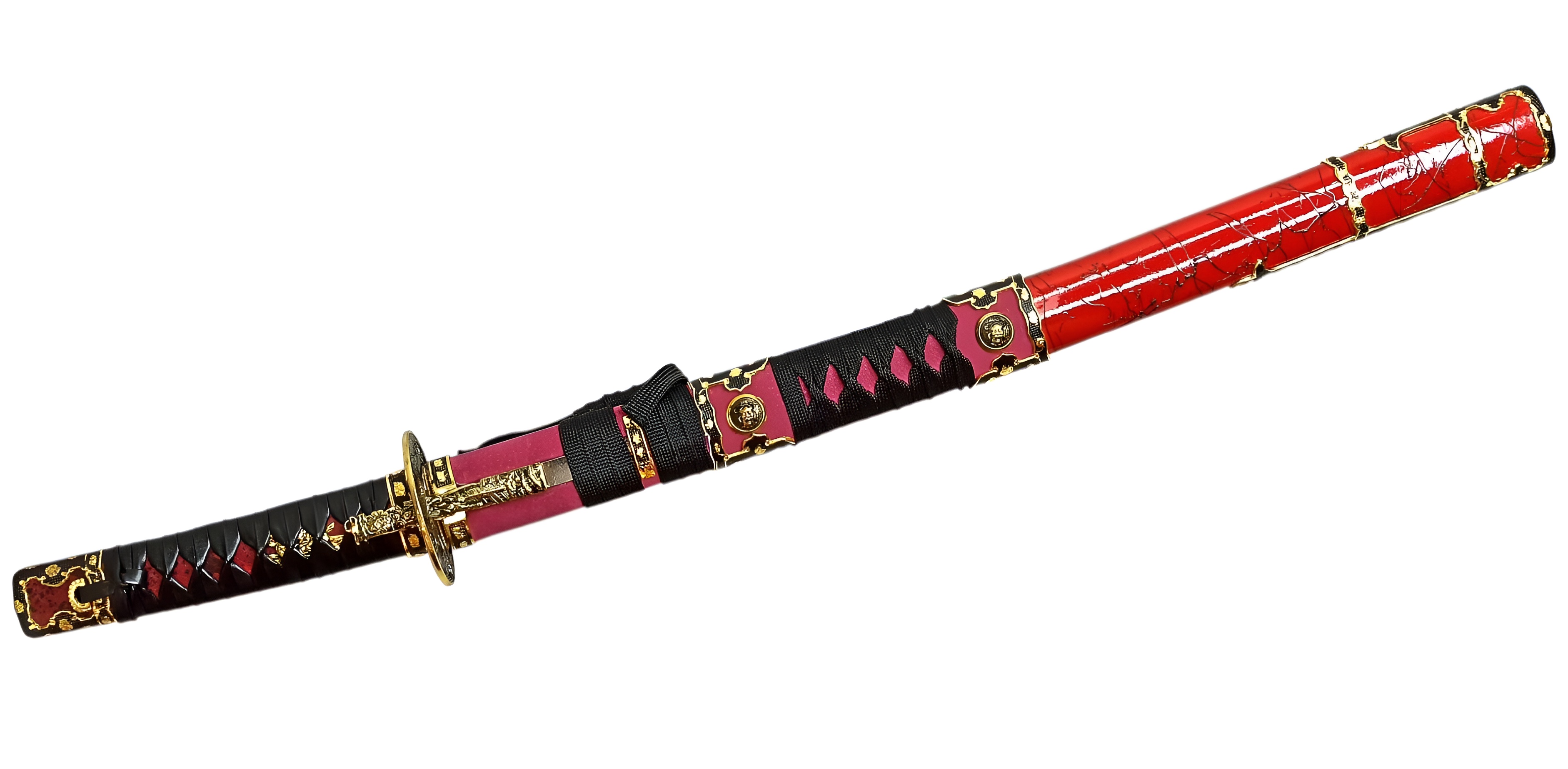 Ножны | красные лакированные (деревянные), обтянутые красной кожей, хлопковая тесьма, металл |