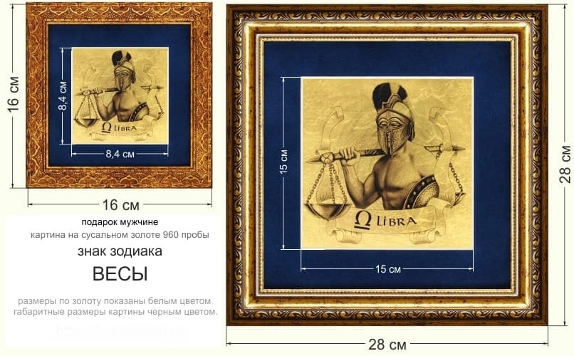 - Эксклюзивная авторская картина «Весы Амазонка» из коллекции «Знаки Зодиака».На золотом полотне запечатлен притягательный образ девушки с весами - авторская интерпретация созвездия, символизирующая внутреннее равновесие, хладнокровие и стремление к справедливости.Работа выполнена вручную на листах настоящего сусального золота 23 карата.Глубокое бордовое бархатное паспарту в сочетании с золотистой рамой под стеклом придает изделию премиальный вид.