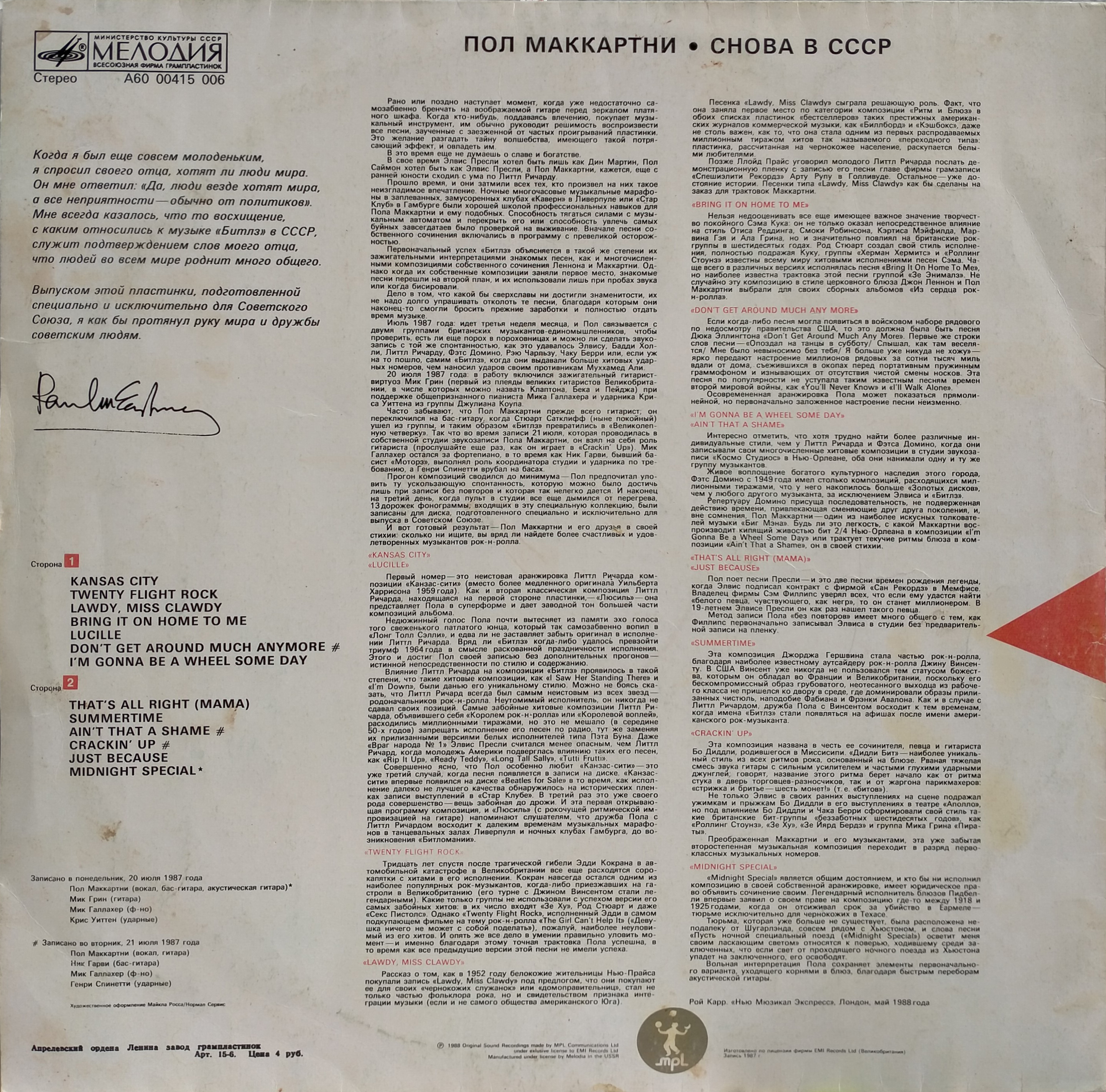 Виниловая пластинка Пол Маккартни, Снова в СССР, бу