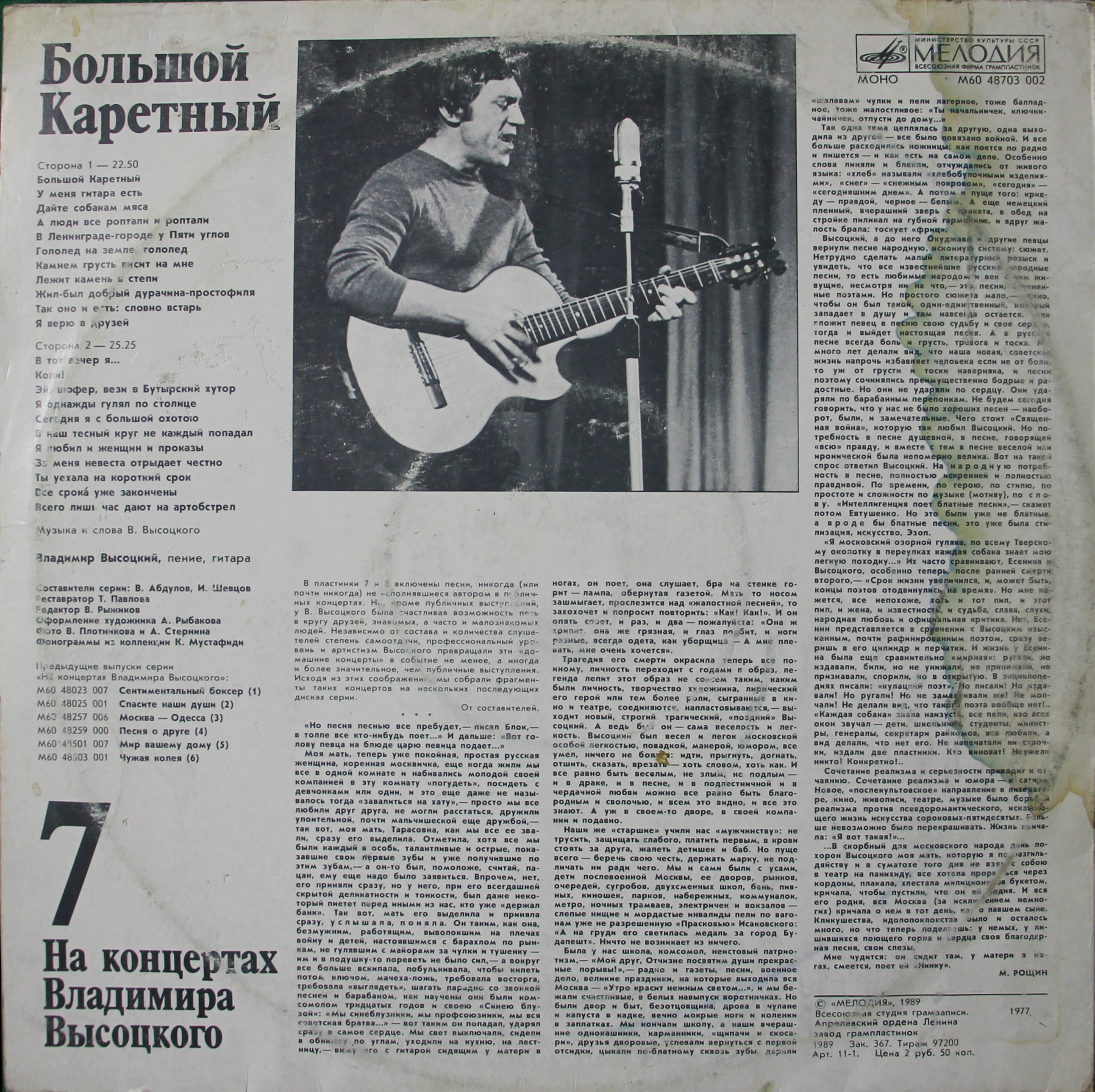 ----Виниловая пластинка Владимир Высоцкий, На концертах 7: Большой Каретный, бу
